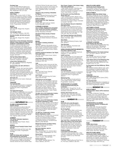 HeART and Soul 6pm. $75/$550 table of 8. The Vassar Haiti Project in partnership with Poughkeepsie Ice House and Novella’s presents a special Valentine’s dinner to celebrate women in our community & strengthen a community of women in Haiti. Honoring Caryn Halle, Molly Katz, and Kristy Grimes with the Heart and Soul of the Community Award. Novella’s, New Paltz. 255-2122.