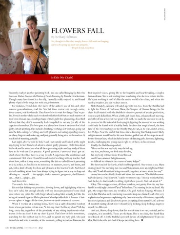 I recently read yet another parenting book, this one called Bringing Up Bebe: One American Mother Discovers the Wisdom of French Parenting by Pamela Druckerman. Though many have found it a bit silly, I actually really enjoyed it, and found plenty of juicy little things that make you go hmmmmm. For instance, French kids (for more of the author’s use of this and other massive generalizations, read the New York Times review) sit through entire, three-course, real-food meals. They know how to wait for things. They’re polite. French mothers bake each weekend with their kids but are such masters of their own domain (as a result perhaps of their guilt-free pleasuring, described below) that they don’t necessarily feel compelled to eat any (or all) of the cupcakes themselves. The best part was about how French mothers don’t feel guilty. About anything.This includes drinking, working, not working, going out sans the kids, eating everything, and with pleasure, not eating, spending money on classy lingerie and make-up, and just generally being nice to themselves. It was kind of stunning, actually. Last night, after A went to bed, T and I sat outside and looked at the night sky, trying to feel French-ish about a shared guilty pleasure. I told him about the book and he asked me what all these parenting styles and my study of them have to do with my Zen practice. A good question. I answered that I get excited when I feel like there is a way to help A experience the confidence and containment I felt when I found Zen and started working with my teacher. And about how, odd as it may seem, something like this so-called French parenting style is, in fact, so Zen-like in its insistence on manners, mores, and limits, and yet, with a kind of lusty freedom and pleasure at the heart of it all. And then I started rambling about how I am always trying to figure out a way so leap out of being so....myself.....the uptight, dorky, neurotic, pragmatic, shrill American....that I....(gulp)...am. And there it is. The search: for a better me. It’s not that shifting our priorities, slowing down, and highlighting what we love isn’t valid, but enough already with my incessant pursuit of some ideal state where my entire life will (forget about looking like) actually feel like the string of curated vignette Flickr photos of a burlap tablecloth + flowers + butter on a plate + happy-all-the-time, heaven-on-earth existence I so crave. When T worked at a nursing home, there was a sadly demented resident there whose particular refrain was, “Is this my chair? Is this my chair?” All day long, every day, regardless of the proximity of any sitting implements whatsoever. Is this my chair? Is this my chair? I get it. That’s how it feels sometimes, searching for the perfect way to live, and to parent my baby girl, who just turned six and who is outside, at the moment, yelling in various Ramona the 100 whole living ChronograM 3/12