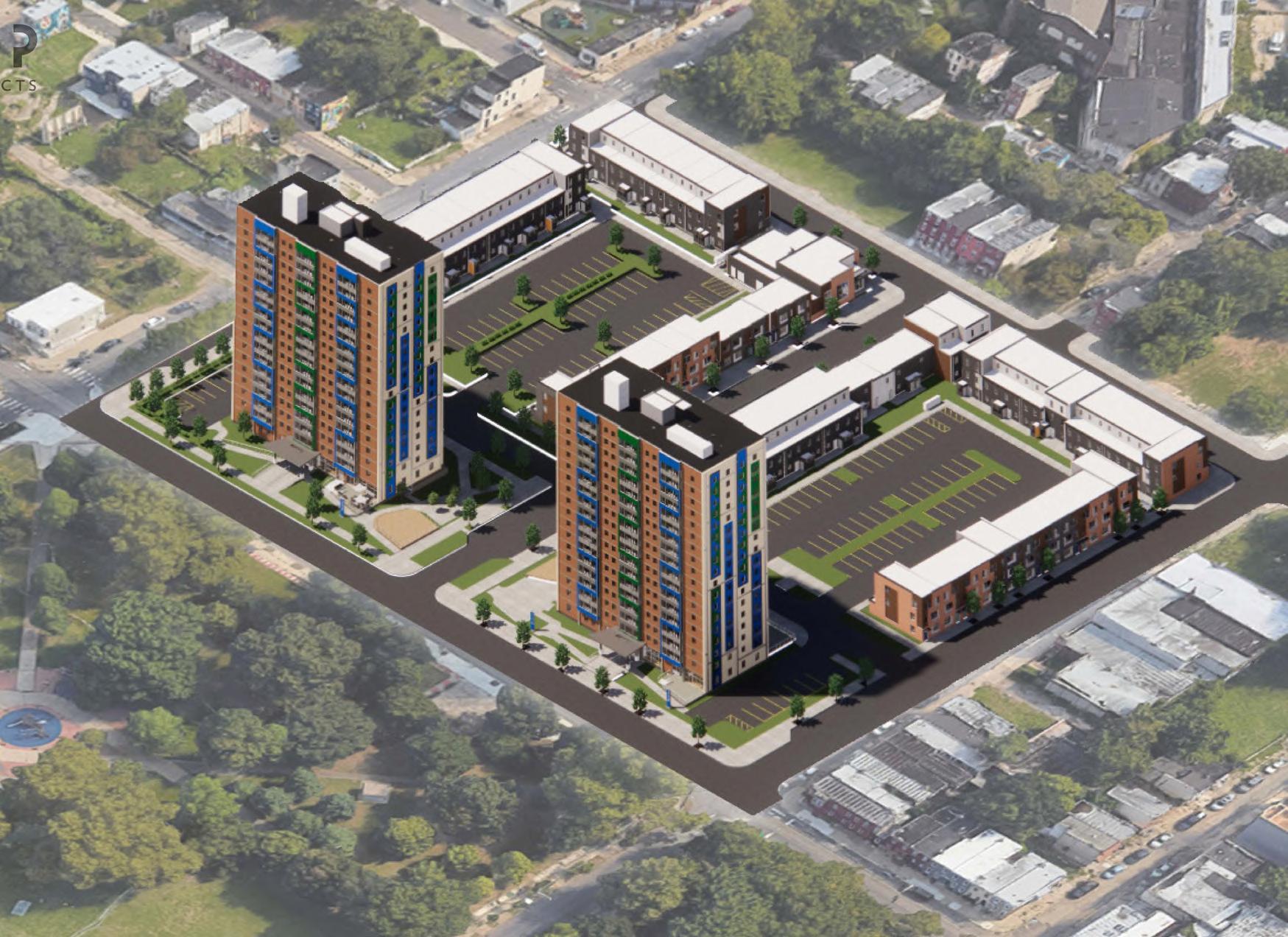Two-phased affordable housing project consisting of 18-story towers and 35 townhomes