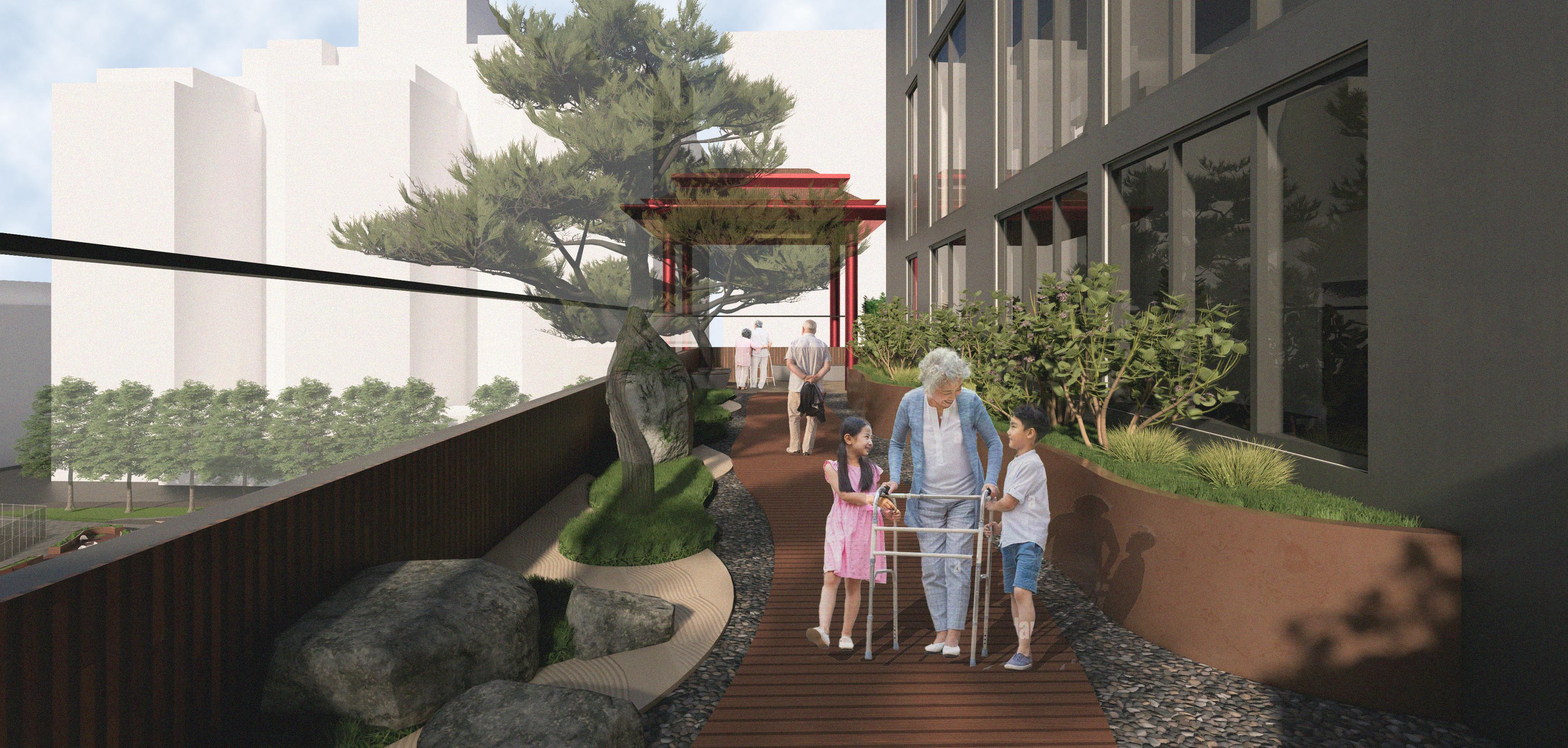 designing for past, present, and future generations honoring the Chinese American heritage connecting with Taoism through nature promoting local businesses and foot traffic