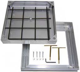 Moule couvercle de regard en acier inoxydable, avec système de levage, treillis soudé et vis de fixation (profondeur 75 mm).