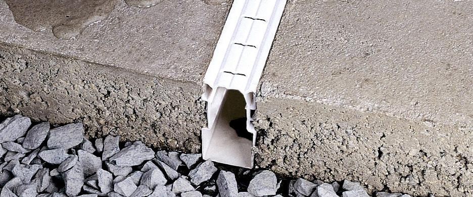 Système de rails de coffrages perdus en PVC, cumule les fonctions : joints de construction, de retrait et de dilatation.