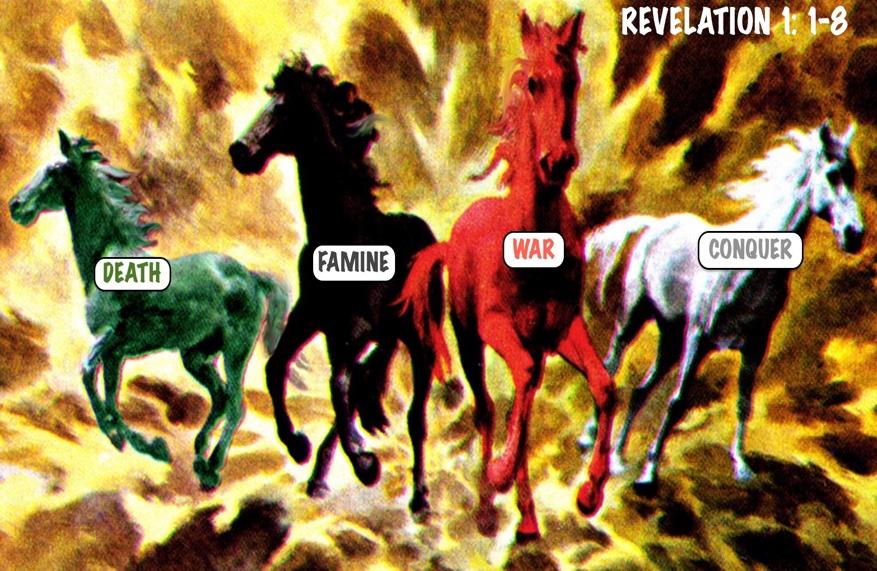 horsemen are the same colors of the Arab national flags? Revelation is foretelling which lands will rise against Israel in the Tribulation, when their peace covenant is broken and Anti-Christ is fully revealed. Ezekiel 38 & 39 also prophesied an invasion by these same Arab nations when Isreal is “at peace” and unsuspecting. Currently, Israel’s never enjoyed peace with its Arab neighbors, though progress was moving in that direction from 2017 until the