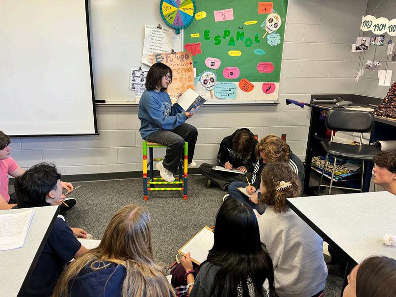 Writing is something we all have to do throughout our lives. Students leave English IV having developed a closer relationship with their writer's voice. This allows for greater ease in authentically expressing their ideas and themselves. --- Each senior conceptualizes and creates their own bound book in collaboration with Mrs. Fitzpatrick's printing classes. The students write the content in class, edit the content, then typeset their books, as well as create their covers using their Adobe knowledge.
