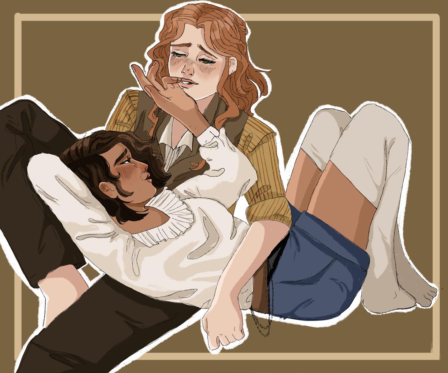 Kacvinsky tends to draw people with eccentric outfits in her exaggerated style.