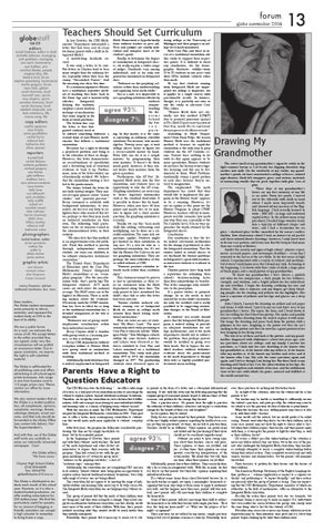 Parents Have a Right to Question Educators The CHS Mission states the following. “…we offer a wide range of courses as a vital part of our curriculum in order to encourage the student to explore options beyond traditional academic boundaries. Therefore, we design the curriculum in such a fashion that it differentiates skills and concepts in an attempt to meet individual abilities and learning styles as a means of helping every student succeed.” With this mission in mind, the CHS Mathematics Department adopted the Integrated Mathematics curriculum in 2000. Their goal was to offer a better, more contemporary curriculum to students; one that would make math more applicable to students’ everyday lives. After four years, the program has fallen into considerable questioning, this time not by simply unsatisfied students, but by discontented parents. In the beginning of October, these parents met with their students’ math teachers, the head of the math department and other district administrators to express their concerns with the program. They had several issues with the program including use of “extensive group work,” “reliance on the graphing calculator,” a lack of “academic rigor,” among others. Additionally, the curriculum was not completing CHS’ mission in its entirety. Indeed students were being given an opportunity to explore options beyond traditional academic boundaries, but a truly wide range of courses was not being offered. The curriculum did not appear to be meeting the range of individual abilities and learning styles necessary to be truly successful. The Integrated Math curriculum was not helping every student succeed. This group of parents felt that the needs of their children were not being met, and they were asking for a change. They asked simply for an alternative traditional curriculum, one that, ideally, would meet more of the needs of their children. With time, these parents realized receiving what they wanted would be much harder than they initially anticipated. Eventually, these parents felt it necessary to reach out to oth-
