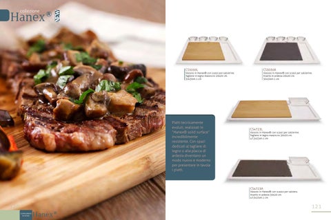 Piatti tecnicamente evoluti, realizzati in “Hanex® solid surface” incredibilmente resistente. Con spazi dedicati al tagliere di legno o alla placca di ardesia diventano un modo nuovo e moderno per presentare in tavola i piatti.