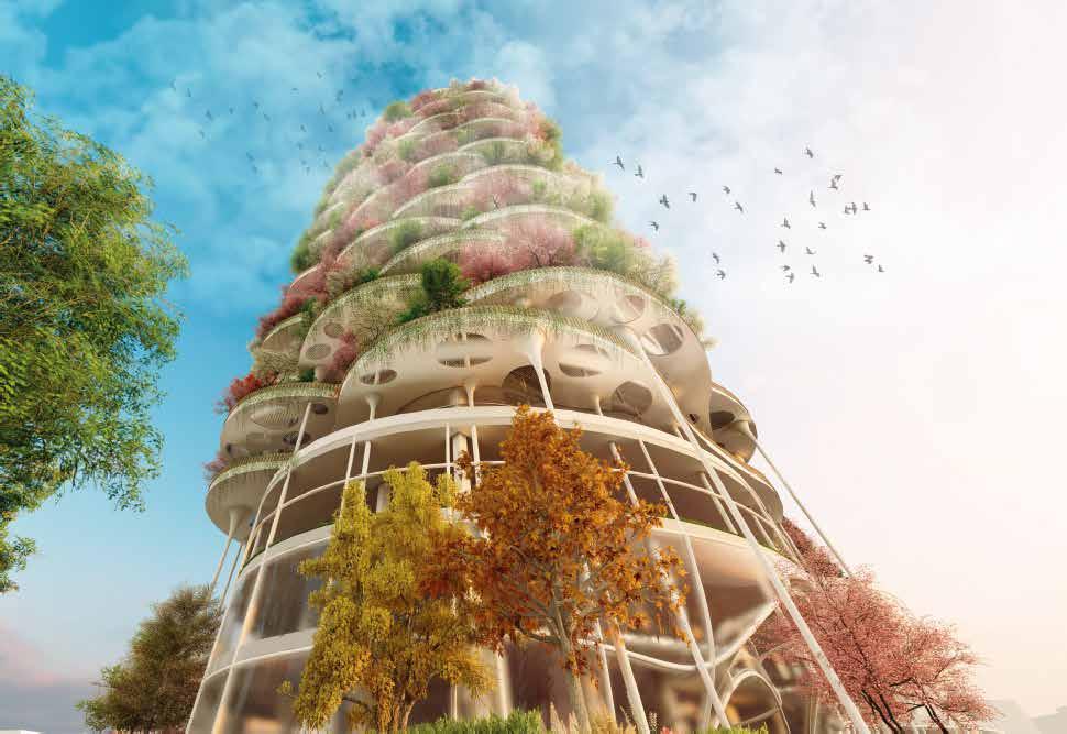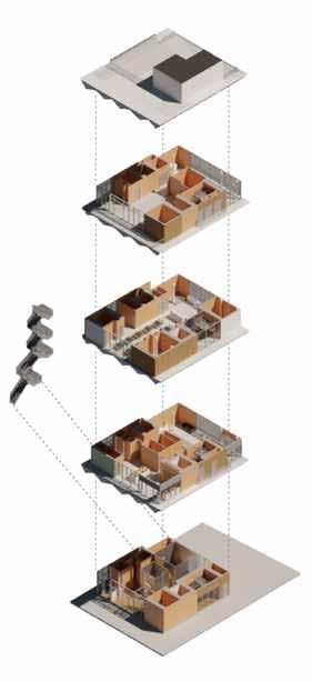 On residential floors, 10 units surrounded with center circulation and public spaces connected to the public balcony. The balcony is design for residents to interact and invite wild animals to come to Sagesta.