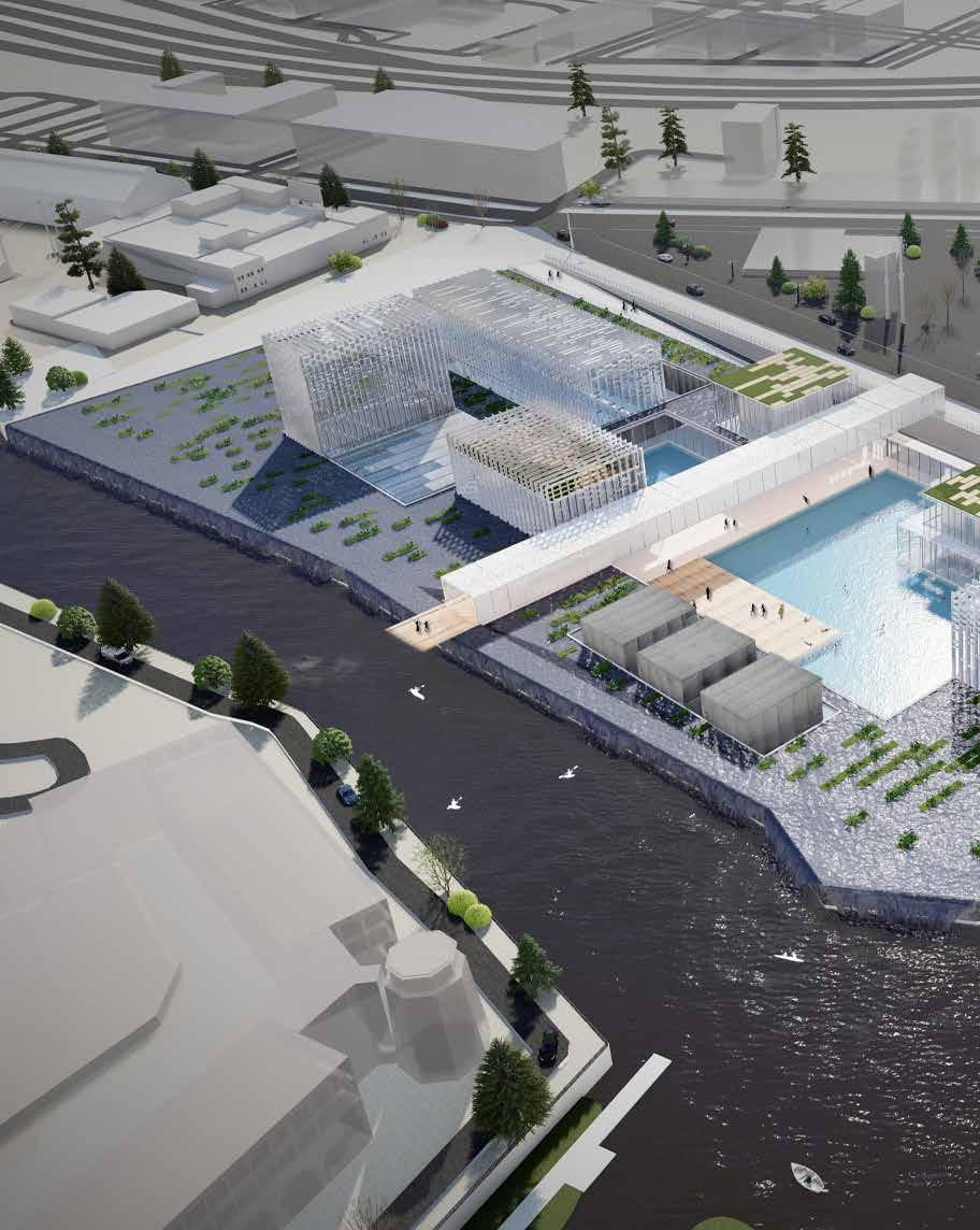 Once in the building, users are transported into different pools based off the sport. They are immersed in water, as there is a visual connection between the pools and the wetlands.