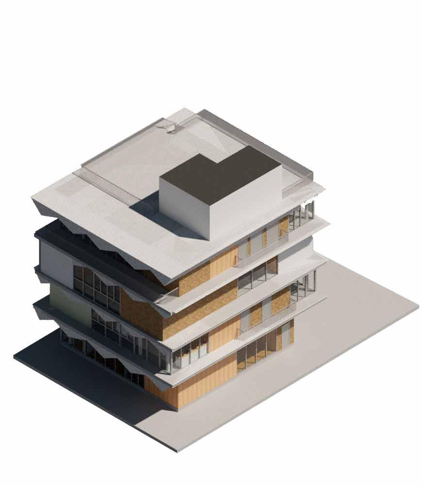 Roof plan is create to have outdoor dining area, the skating park and greenhouse with several flowers. This is the space emphasize "Sage" with vegetation and places for occupants to empower their physical and mental healthiness.