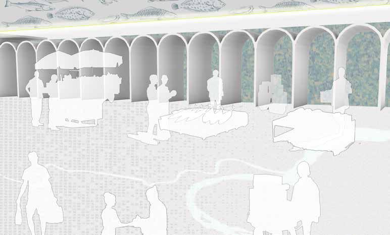 The existing vendors layout is arranged in a lengthy linear circulation, leading to inefficiency for customers and insufficient space for extended stays. Customers are limited to a pick-andgo experience. However, I believe a marketplace should evolve into an urban space where patrons can linger, making it a part of their daily life. Incorporating an art gallery, akin to those enriching Dunhua North Road, would be integral to this refined layout for Chenggong market.