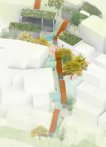 To zoom into smaller scale, this isometric shows the program that I have chosen on vacant areas to focus on food (cooking + growing), the arts, collaborative workspace, ecological and science education, and learning in water.