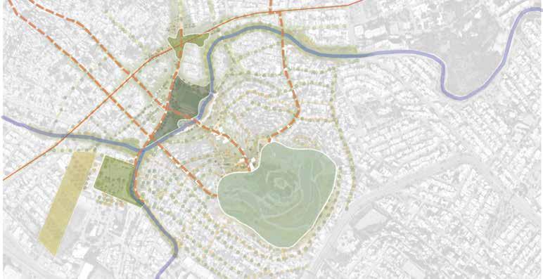Based off the information mapped out in the neighborhood, I have selected these areas of focus to develop the Ecological Corridor and the more specific educational, health-care, and water management interventions.