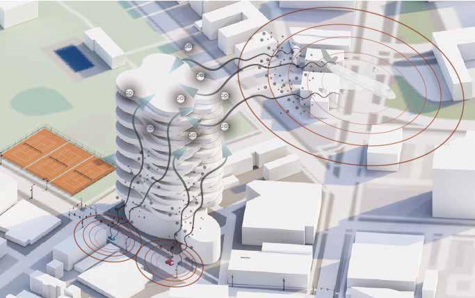 The objective of Sage-sta is to decrease the pressure for the surrounding area while the buiding is 300 feet tall.