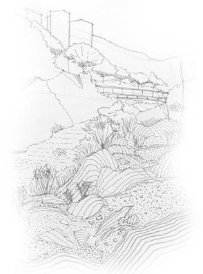 The idea of buoyancy has also been applied to create private and meditative spaces that are carved out in the land.