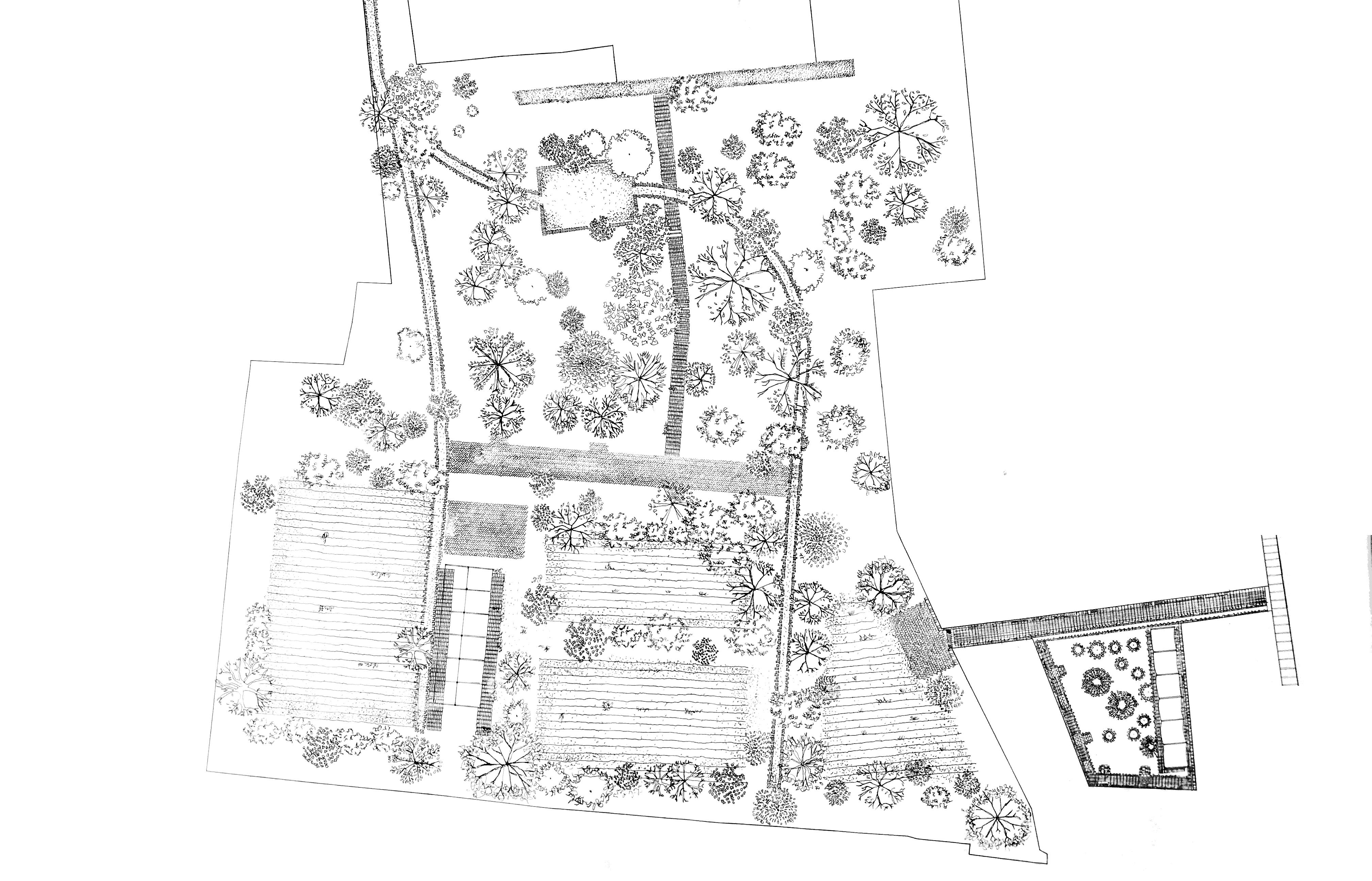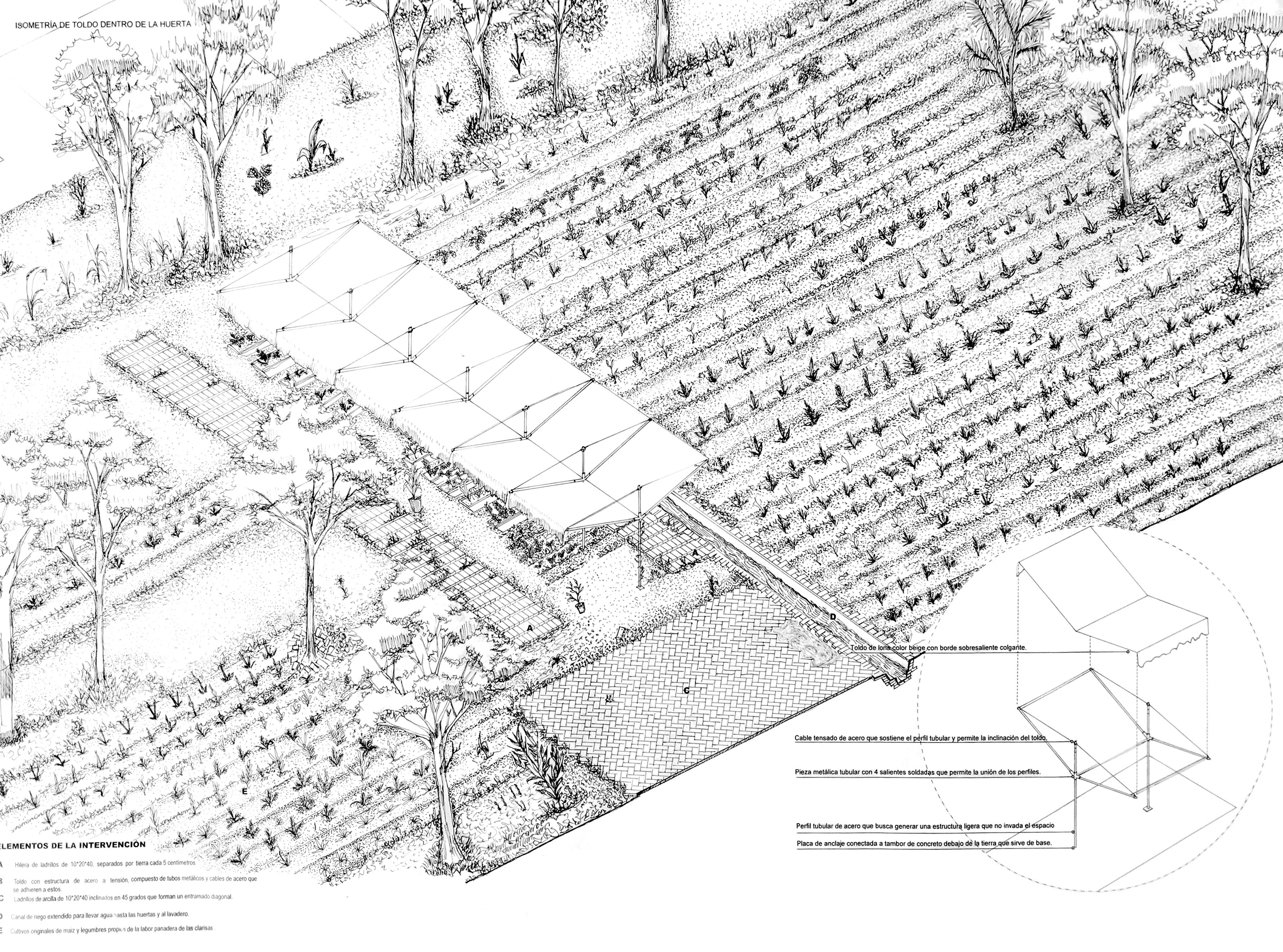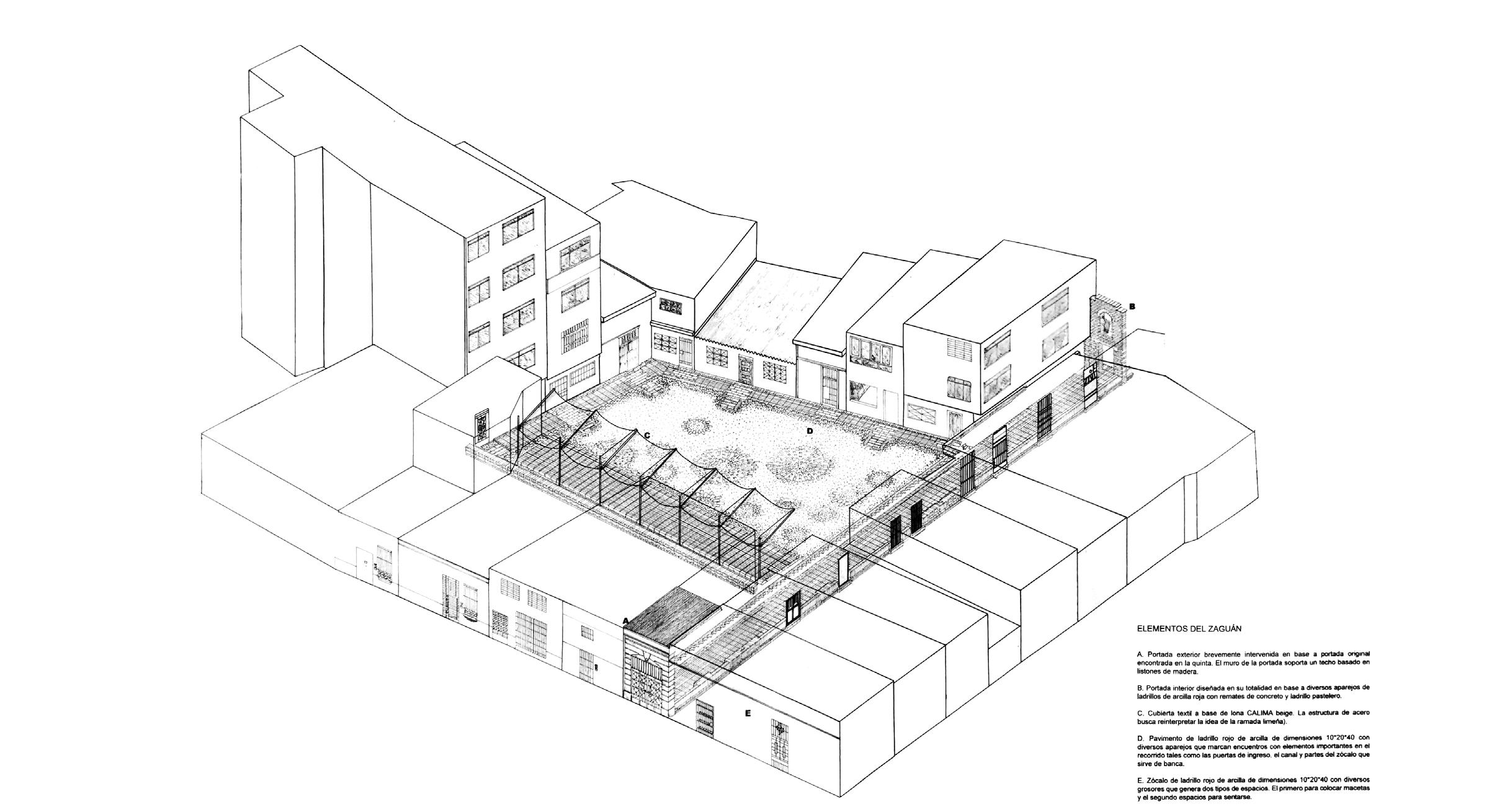 El conjunto de viviendas se ubica en uno de los huertos del convento de Santa Catalina, en Barrios Altos. Esto condiciona al proyecto no solo en los accesos, sino también en la sensibilidad de este. Para ello, dado que el proyecto está orientado a estudiantes, se decide por formar una tipología de vivienda que se puede agrupar en formaciones de dos y de 4. Ello se logra mediante la reducción de la vivienda a una unidad mínima de 5x5m, la cual se extiende hasta 10x10m en función de generar estos bloques, así como también para la formación de bloques adicionales de servicio. A su vez, esta medida se reduce a 2.5m.