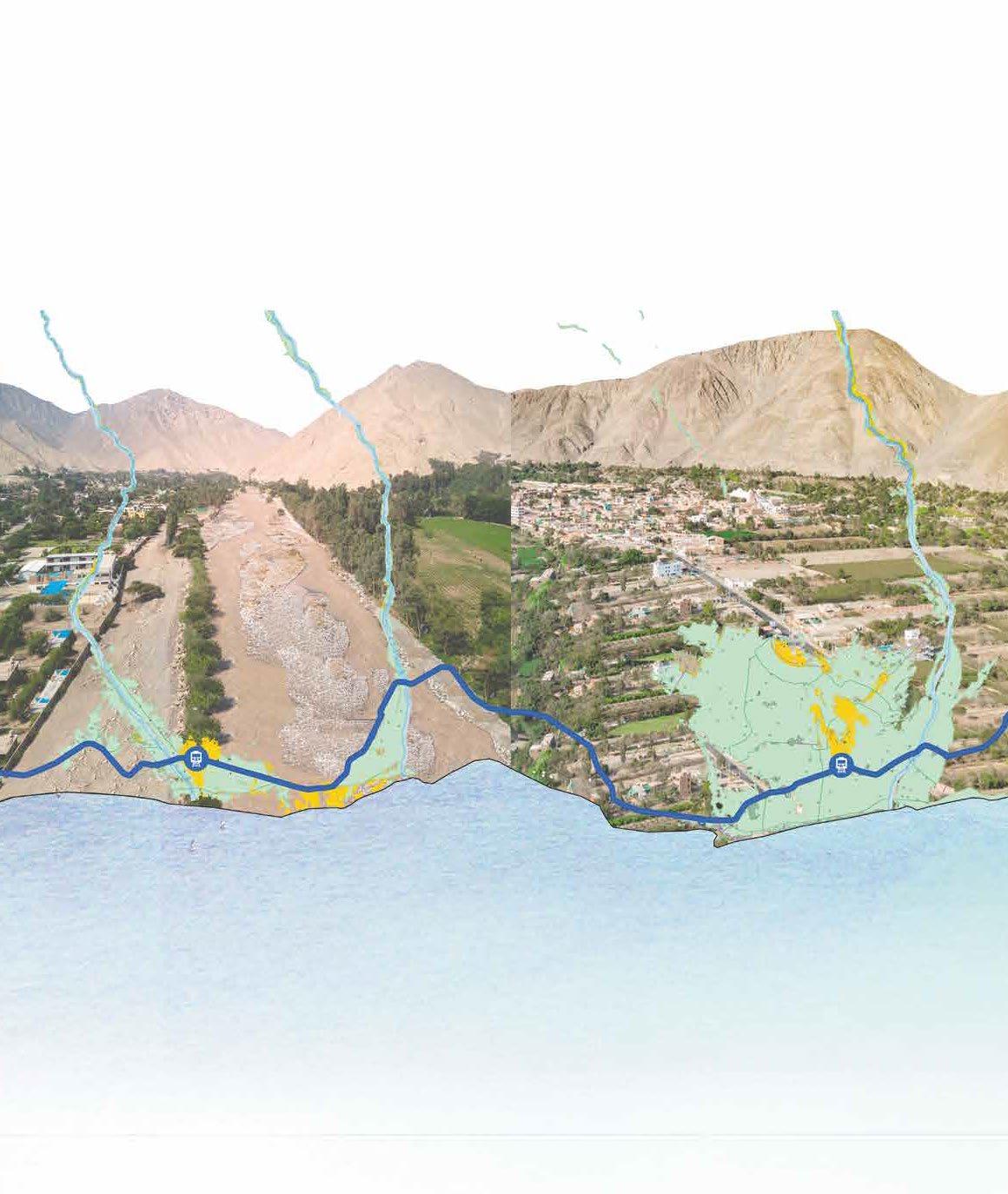 El proyecto propone la conformación de una ciudad compuesta por tres a lo largo de un corredor del eje sur. (Proyecto en colaboración con Arlette de la Torre, Diego Bermúdez, Flor Rodríguez, Isabella Gomero, Jhon Carrasco y Milagros Rosas).