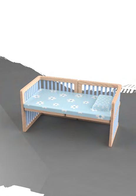 是需用品中大多數家長認為最浪費錢的,因為小孩成長速度快, 能使用的時間較短,而在現今的市場上的產品較多侷限於嬰兒時期所使用,導致大部分的家庭會在不同 階段購買不同的床。作為設計發想,想達到減少資源的浪費和具有陪伴意義