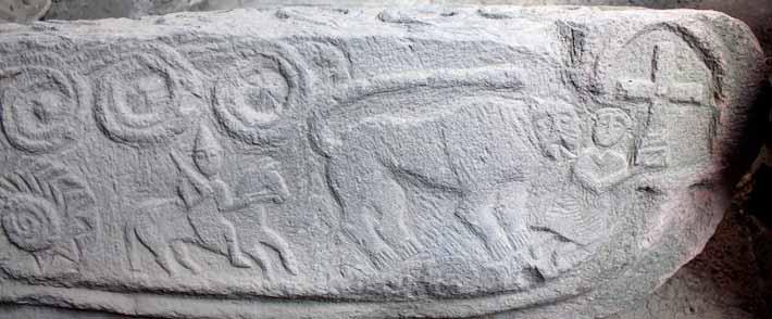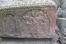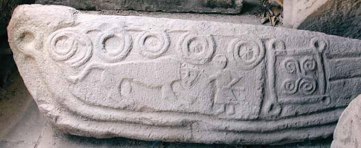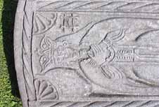 edges of the stone are surrounded by torus-moulded borders decorated with coniferous shaped engraved