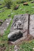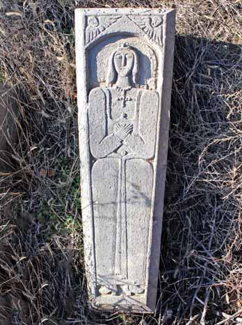 . This theory is supported by a relief-carved image of a woman holding earlier, the relief-carved square shape, which can sometimes be identified as a loom according to the which was also a common occupation in those days both for women and men. Another grave at the same cemetery preserves fragments of a three-line Mkhedruli inscription, partly