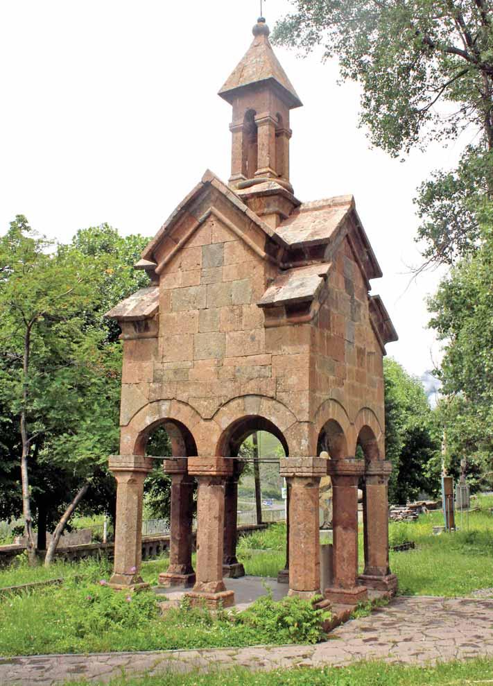 The most widespread type of gravestone in Georgia is the tomb chest, the decorations of which manifest the aesthetics and artistic tendencies of different eras. The worldview of an epoch, the economic and social background, the profession of the departed and his or her social status was also clearly reflected in other memorial monuments. mausoleum of this bishop, the Chapel of Divinity is located near the village of Pichkhovani (Akhmeta saalkirche built with alternating brickwork and slate stonework . The ledger stone, with its relief depiction of the bishop, was