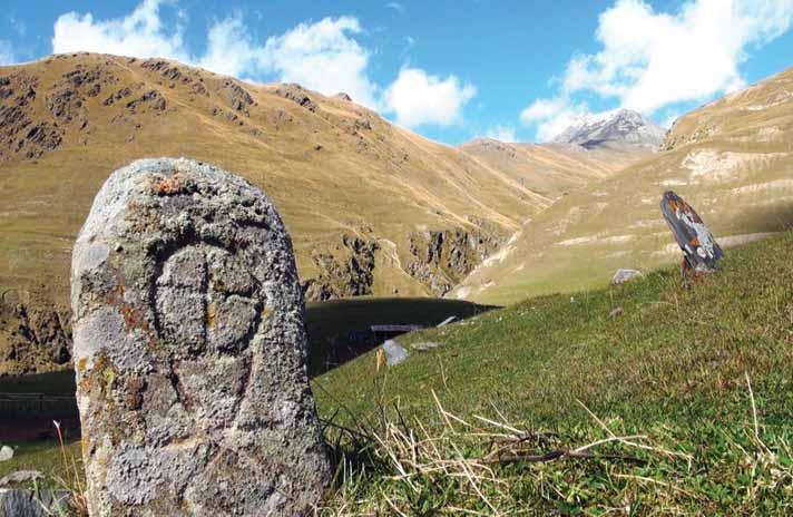 to a later period based on its artistic tendencies carved bas-relief depiction clearly betrays a stylistic link with medieval sculpture through its high degree depictions of vessels for water and wine, such as various types of a jug, with relief-carved, circular motifs lined up beside them. These images probably represent items connected with the cult of the departed prosphora are depicted on a horizontally elongated tile, together with their equipment (hammer, mason’s square, using simple, rigid, and generalized outlines. The artistic and stylistic features of the relief composition, which depicts these builders from what appears to be an aerial viewpoint, remind us of other gravestones of the same period. They also call to mind gravestones from later periods. Both the human figures and the items of everyday use are depicted by the same means and with the same height of relief carving. the decline of professional mastery to the level of mere craftsmanship, a decline which will later result th th . in Poladauri Gorge are also distinguished by their artistic diversity th- th cc. by their artistic and stylistic features. That said, they greatly differ from the highly artistic portrayal of the bishop of Kharchashani, which was nourished by the medieval tradition of Georgian sculpture. These gravestones are mostly created by masters of the folk tradition, and at the same time, bear features of