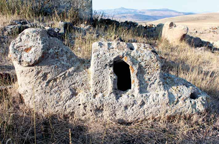 The wooden and stone sarcophagi, as well as fabric tomb covers embroidered with the images of bishops, were well known in the Christian East at the time . Although, unlike the figure of the bishop of Kharchashani, most of the Russian, Serbian, and Romanian monuments of the time are carved in hautrelief technique, or are sometimes almost sculptures in the round, reclining upon the surfaces of tombs, and obviously reflecting European illusionistic tendencies.