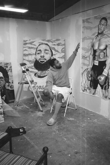 Nipsey believed in refuting the idea of escaping the hood, a similar philoso phy to that of Kendrick Lamar, where you don’t leave your community be hind. Instead, use your fame and power to build it. I think with Nipsey dying, your work takes on a level of commemoration, almost that you’re painting this figure and making him eternal.