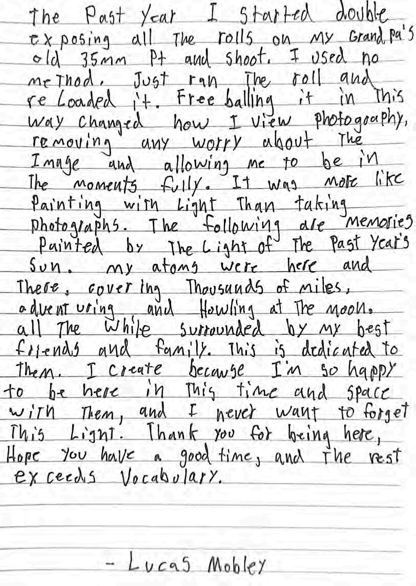 You can’t put your arms around a memory, but we can try to capture the beauty of light on celluloid, and we can try our very best to create some thing with the vulnerability and the trust the artists within these pages showed us. None of this was easy, by no means did we do it alone, there were missteps, as there should be. But ultimately a mistake is worth the lesson, so long as you learn it. All I hope we do with this issue, with every issue to come, is continue that learning, to question it all, and to never assume we know what is to come. Because when each copy of Chuck is lost to the sands of time, when they lay in our children’s children’s attics, as some relic of the past, I know that the moments of creating this, with you and all our friends, will be far beyond the spine of any one magazine.