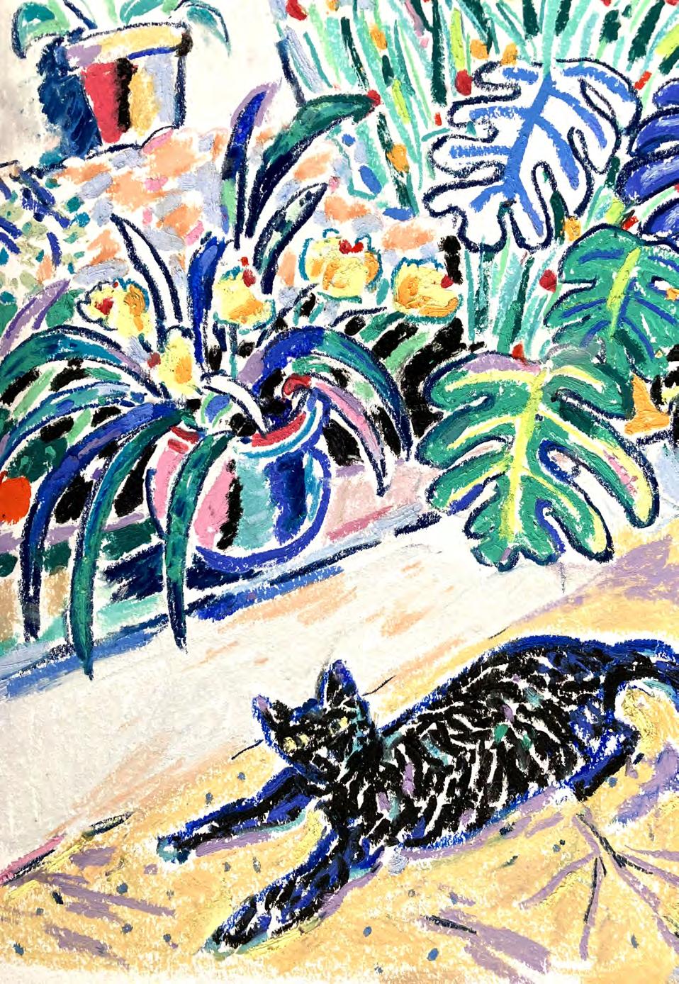 I think about that a lot. I like hang ing out with young people. It’s fun. Just getting Henrietta out here in the studio and seeing where her brain goes with collage, it’s just like, “Wow! What! You’re going at it. Those colors