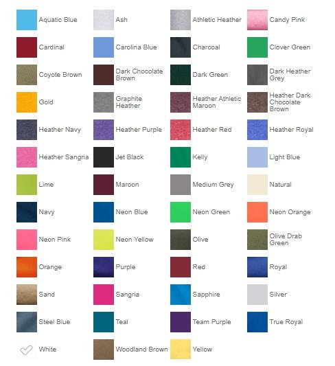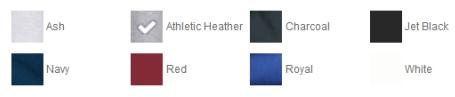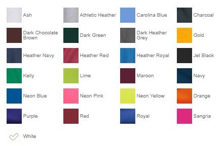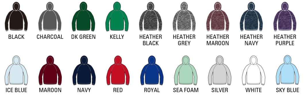 54.99$ HOODY COLORS Fleece Hoodie, Jogger & Perfect Blend Tee DT6100, DM108, DT6107 Per Package 12 Packages Minimum - Add $6 per package for 2 designs 8.3-Oz., 65/35 Ring Spun Cotton/Polyester Joggers *100% Ring Spun Cotton Face (Solids, Light Heather Grey) *60/40 ring spun cotton/polyester (Heathered Charcoal) JOGGER COLORS: Light Heather Gray, Heathered Charcoal & Black 54.99$ Promotion price includes 2-Color Logo, 1- Location. 1 Color Logo on Joggers. Designs must be the same, and must be the same print colors on the hoodie and tee. Add $6 per package for 2 designs. Names and Numbers on Garments add - $7.50 per garment. 4 Black Charcoal Classic Red Deep Royal Desert Rose Duck Brown Eucalyptus Blue Fiery Red Flint Blue Heather Forest Green Gardenia Grey Frost Heathered Cardinal Heathered Charcoal Heathered Dusty Sage Heathered Kelly Green Heathered Navy Heathered Olive Heathered Purple Heathered Russet Ice Blue Light Heather Grey LightYellow Marigold Heather Neptune Blue New Navy Oatmeal Heather Olive Plum Rosewater Pink Royal Frost White White Smoke WHITE HEATHERED TEAL LIGHT HEATHER GREY HEATHERED ROYAL DEEP TURQUOISE FLECK ROSE FLECK RASPBERRY FLECK FL NT BLUEHEATHER HEATHERED DUSTY SAGE ROYAL FROST HEATHERED KELLY GREEN ELECTRIC PURPLEHEATHER HEATHERED FOREST GREEN AWARENESS P NK HEATHER DEEP ORANGE HEATHER GOLD HEATHER DUCK BROWN HEATHER HEATHERED CARD NAL HEATHERED RUSSET BLUSH FROST HEATHERED RED RED FLECK HEATHERED EGGPLANT HEATHERED BROWN HEATHERED BRIGHT TURQUO SE AQUA HEATHER GREY FROST HEATHERED CHARCOAL CHARCOAL HEATHERED NAVY BLACK DEEP ROYAL FLECK HEATHERED OLIVE
