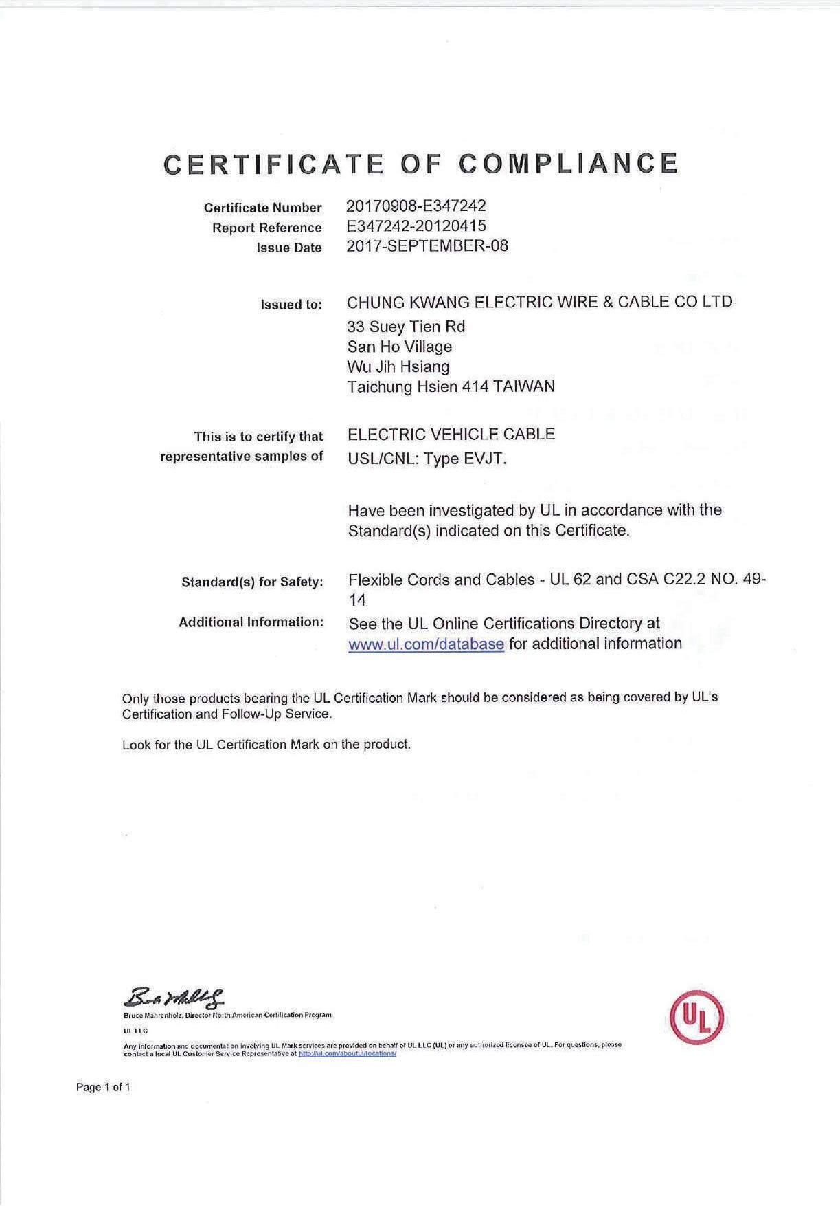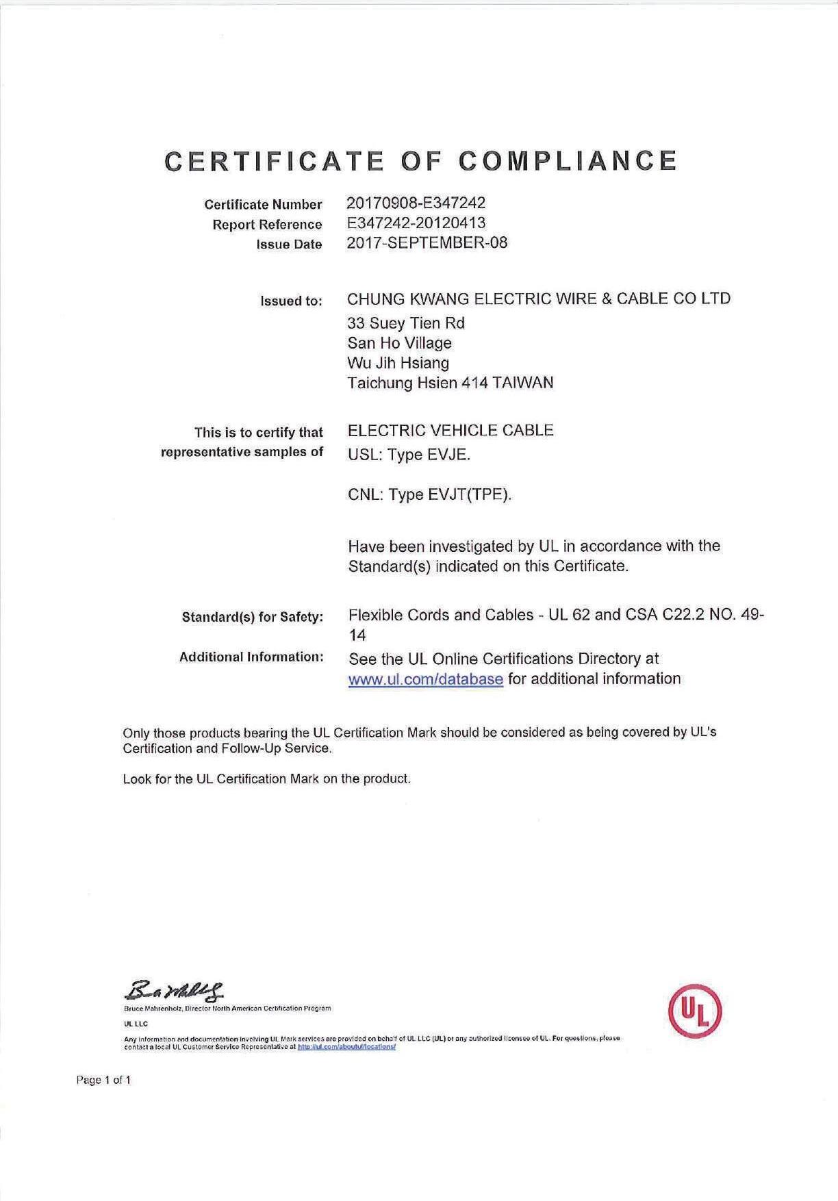 E J 1 7 7 2 c onne c t ors a n d U L 2 5 9 4a n d N E
