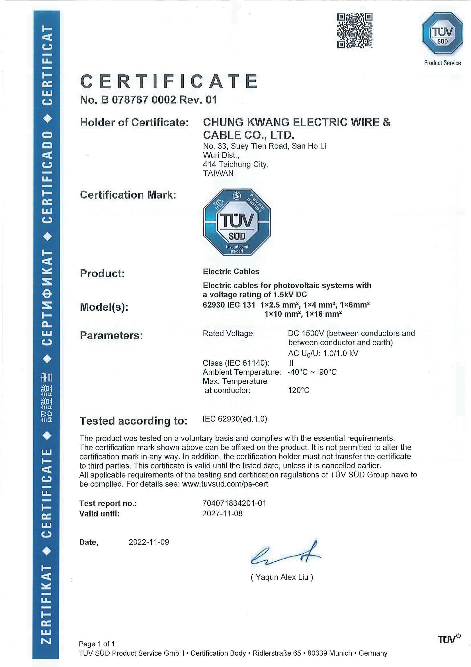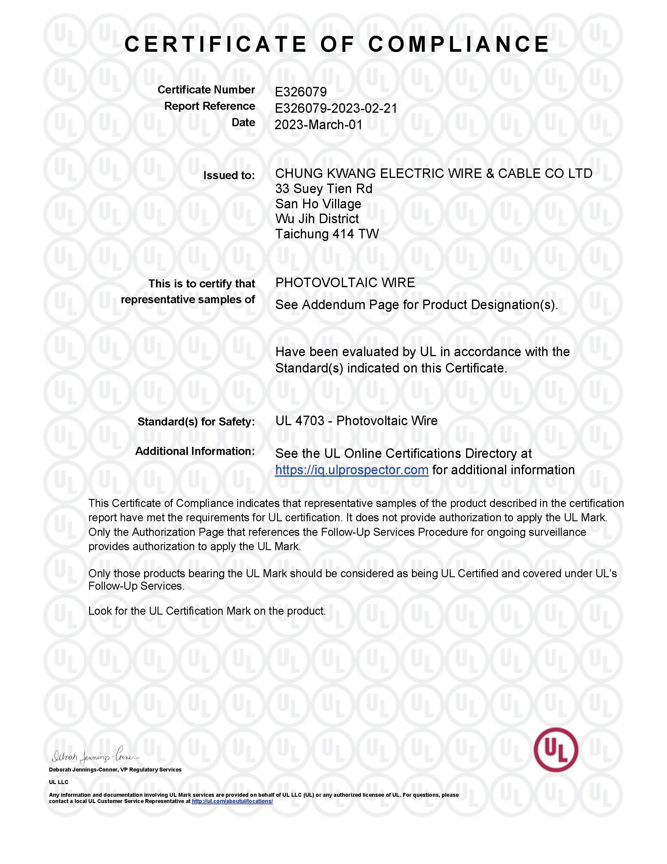 "CHUNG KWANG TAISOLAR E326079 PV WIRE □AWG