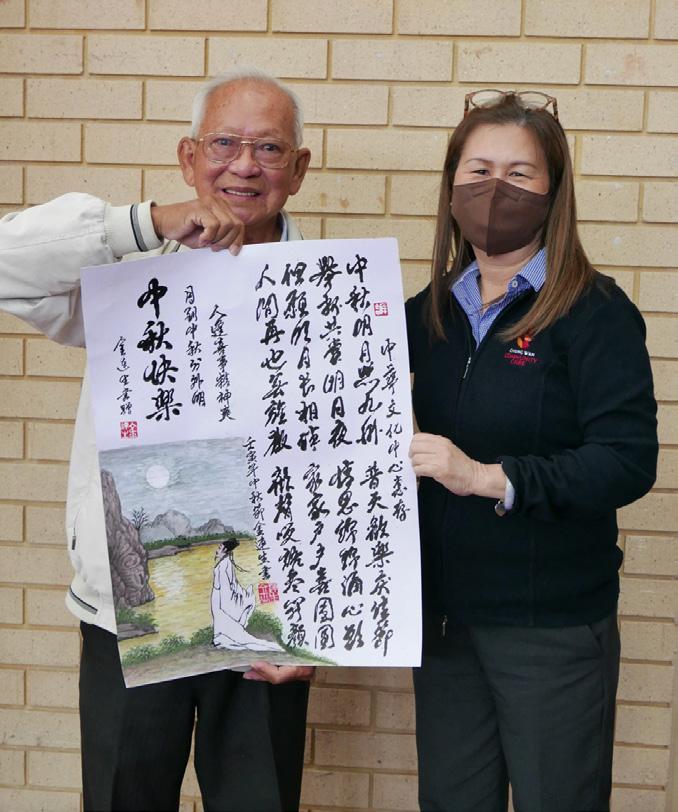 Calligraphy is an elegant traditional art form. During this special season, Mr Jin created a calligraphy painting for Chung Wah Community Care (Chung Wah CC), wishing all members a delightful MidAutumn festival.