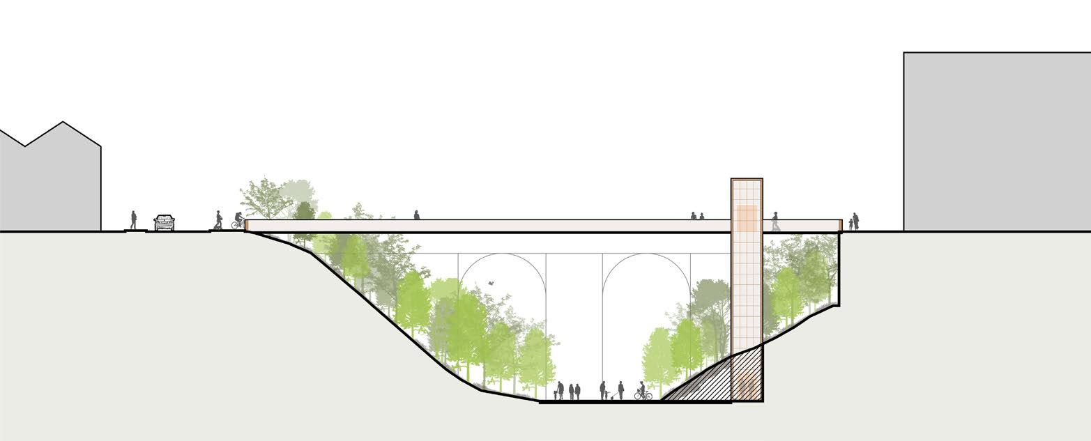 The historic urban ditch will be given conversance, and become an ornamental and playful rain garden.