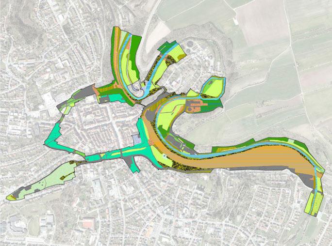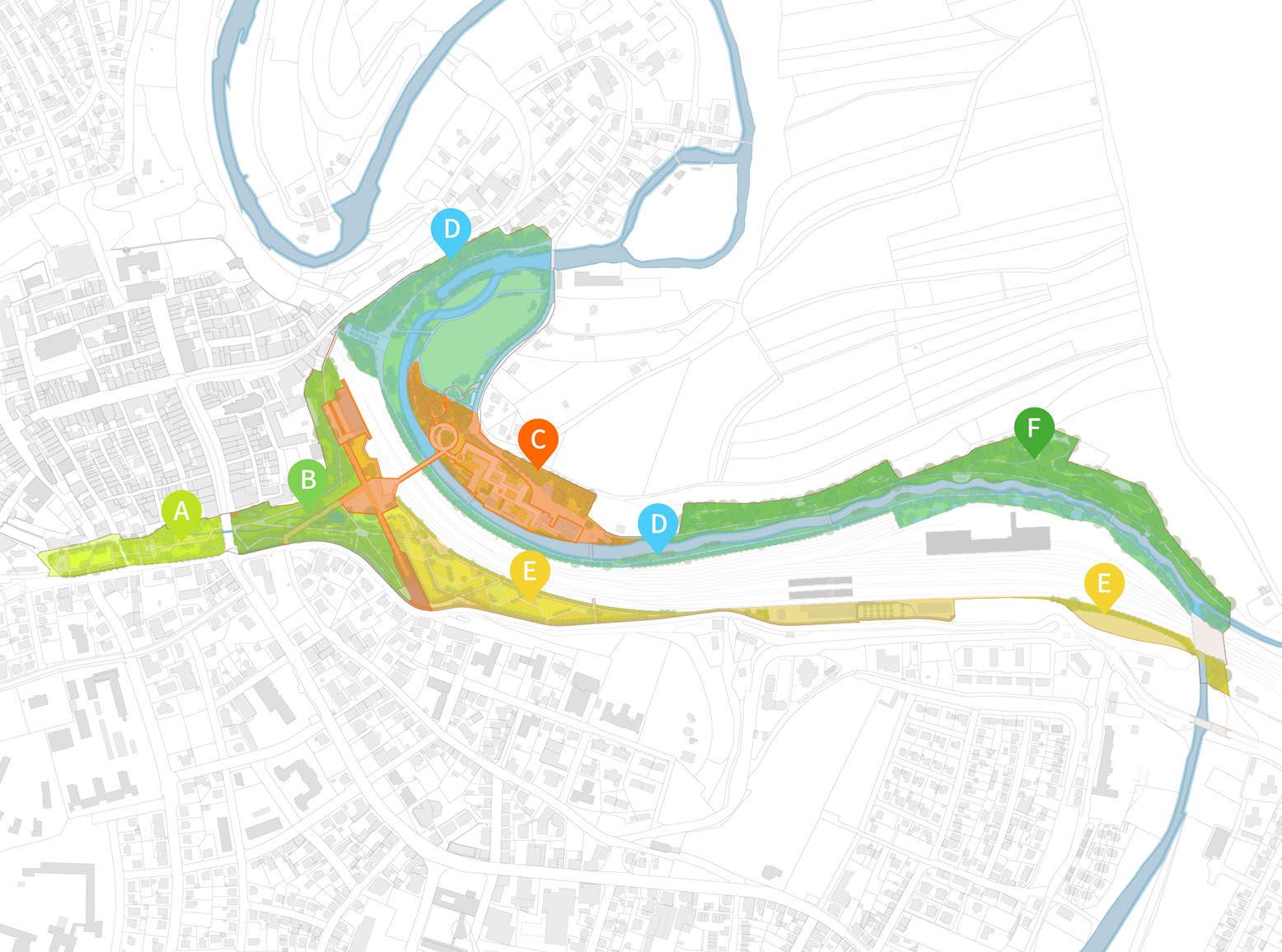 By treating the entire Neckar Experience Section as a "blue container" to absorb dynamic water levels, the floodplain structure of the area will greatly increase flood capacity and thus the water resilience of the city. During the week, large events such as music festivals, lawn markets, and RV campground parties will be held here. In the event of intense precipitation, the area will be transformed into a natural reservoir, acting as a natural flood buffer and reducing flood damage to the surrounding area.