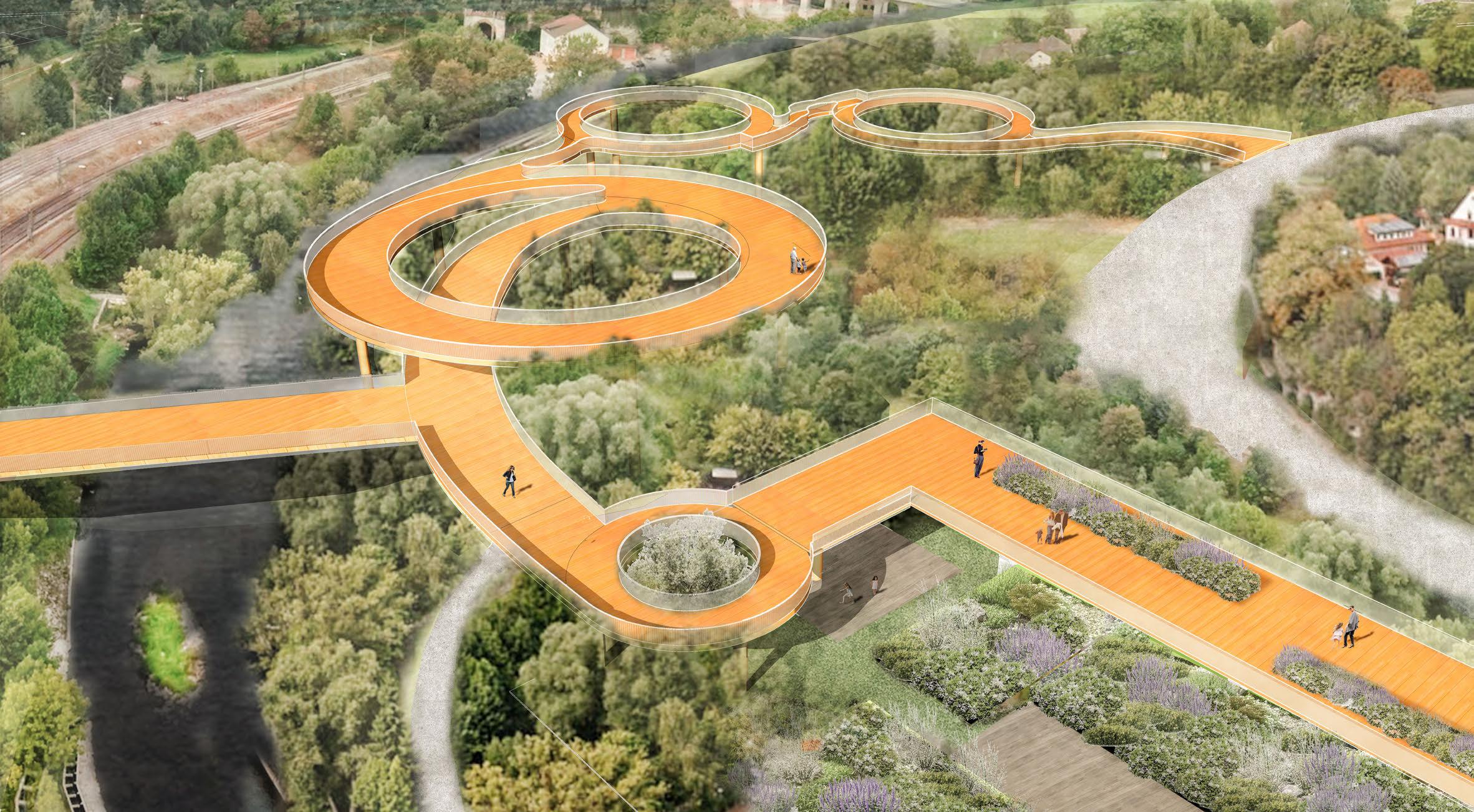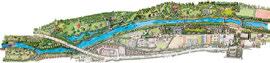 鸟瞰 - LINK & LOOP 核心区 BIRDVIEW - LINK & LOOP CORE SECTION 跨越轨道和内卡河的LOOP环形桥 药用花园 LINK创意园艺展示区 LOOP Ring Bridge crossing the railways and Neckar Medical Garden LINK Creative Gardening Main Exhibition Area