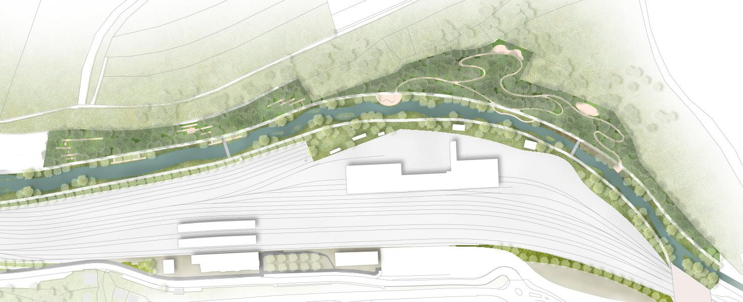 - 花园展的主要展览区 - 进行创意办公、美食等以公共福利为导向的更新 - 增加该区域与未来火车站的通达性 - 除作为历史建筑的主楼外,建筑群可以被解构或扩展 - 花园展的主要客流出入口 - 提供灵活的集散空间 - 增加该区域与周边道路的连通性 - 尽可能地融入当地历史与景观 - 自行车与行人友好 - 桥梁下缘应至少高于内卡河百年一遇水位500mm - Main entrance/exit of the Garden Expo - Provide flexible gathering space - Increase the connectivity to the surrounding roads - The main exhibition area of the Garden Expo - Creative co-working, dining and other public welfare oriented updates - Increase accessibility to the future railway station - The complex can be deconstructed or expanded, except for the main historic building - Integrate local history and landscape as much as possible - Bicycle and pedestrian friendly - The lower edge of the bridge should be at least 500mm above the 100-year water level of the Neckar River SITE RENEWAL REQUEST ENRW PLANT LANDSCAPE BRIDGE PROPOSED RAILWAY STATION 场地更新诉求 ENRW工厂区 景观桥 新火车站 景观桥 ENRW工厂区 Proposed Railway Station Landscape Bridge ENRW Plant 新火车站
