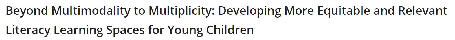 Forzani, E. E., & Ly, C. N. (2022). Beyond Multimodality to Multiplicity: Developing More Equitable and Relevant Literacy Learning Spaces for Young Children. The Reading Teacher, 75(5), 611–620