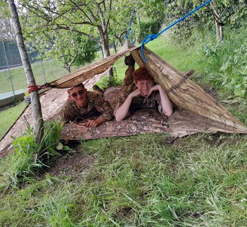RAF cadets took on the challenge of shelter building in the school orchard – to varying degrees of success!
