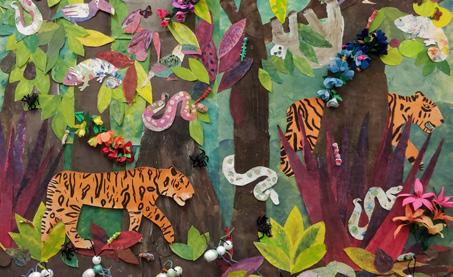 Congratulations to CCJS on becoming a finalist in the David Shepherd Wildlife Global Canvas Art Competition! There were some fantastic entries this year from children representing 57 countries, on the theme ‘Biodiversity – The Complex Web of Life’ and the competition was really tough! Last October’s Art Week theme was focused around Henri Rousseau's famous painting in the National Gallery and the ensuing rainforest themed canvas represented work from each year group and was artistically and lovingly put together by Mrs Foley. We were thrilled to hear that we were a finalist in this international competition!