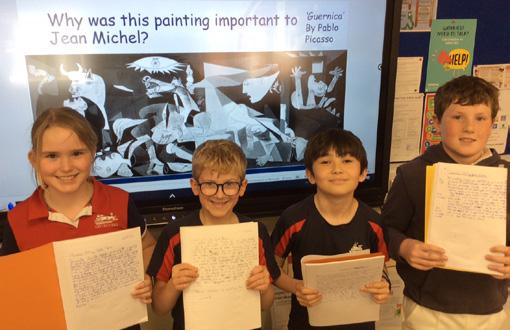 As part of their English topic, Year 5 have been looking closely at Pablo Picasso’s 1937 painting of Guernica. Jean-Michel Basquiat saw the painting for the first time in the Museum of Modern Art in New York (it now hangs in the Museo Reina Sofia in Madrid, Spain). It is one of the most famous anti-war paintings ever created, a form of activism through art, and a piece that shows the power of an artist’s voice, which may have inspired young Jean-Michel. The children wrote about what they could see in the paintings and explained some of the meaning behind the images.