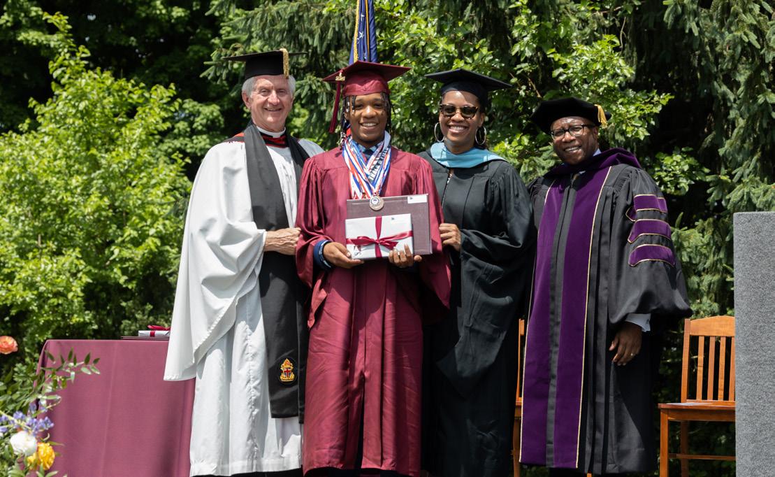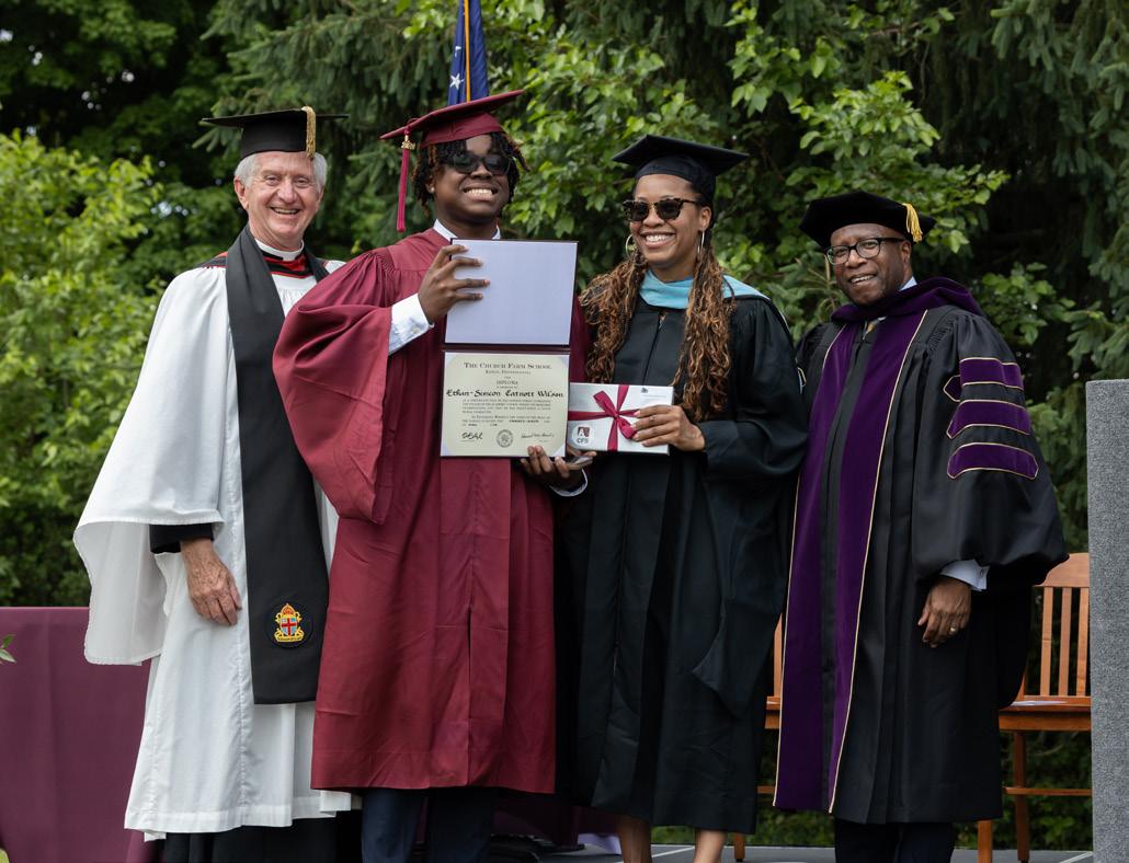 The third Joseph E. Rhile award was presented on Saturday, May 11 during Alumni Dinner to Adarsh Rana ’25 by Art Smith, Adarsh’s wrestling coach and teacher, with Mr. Rhile also in attendance. Adarsh is an exemplary Griffin of Nepalese descent who works hard in the classroom and the cottage, on the wrestling mat and at school events – where he has been enthusiastically portraying Griffey –our school mascot – all year.