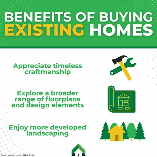 Existing homes can come with a lot of charm, unique floorplans, timeless craftsmanship, and beautiful yards for you and your family.