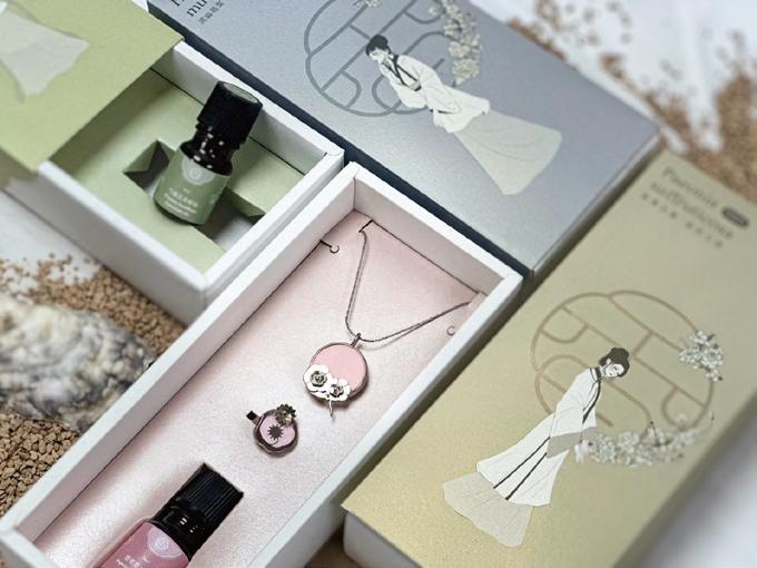 "Ya Xiang Bao" fragrance accessories are inspired by the female imagery in Dream of the Red Chamber. The designs combine the beauty of silverware with the aroma of diffuser stones, incorporating an eco-friendly concept. Made from discarded oyster shell powder, the diffuser stones promote recycling and symbolize the fluidity of nature and emotions.