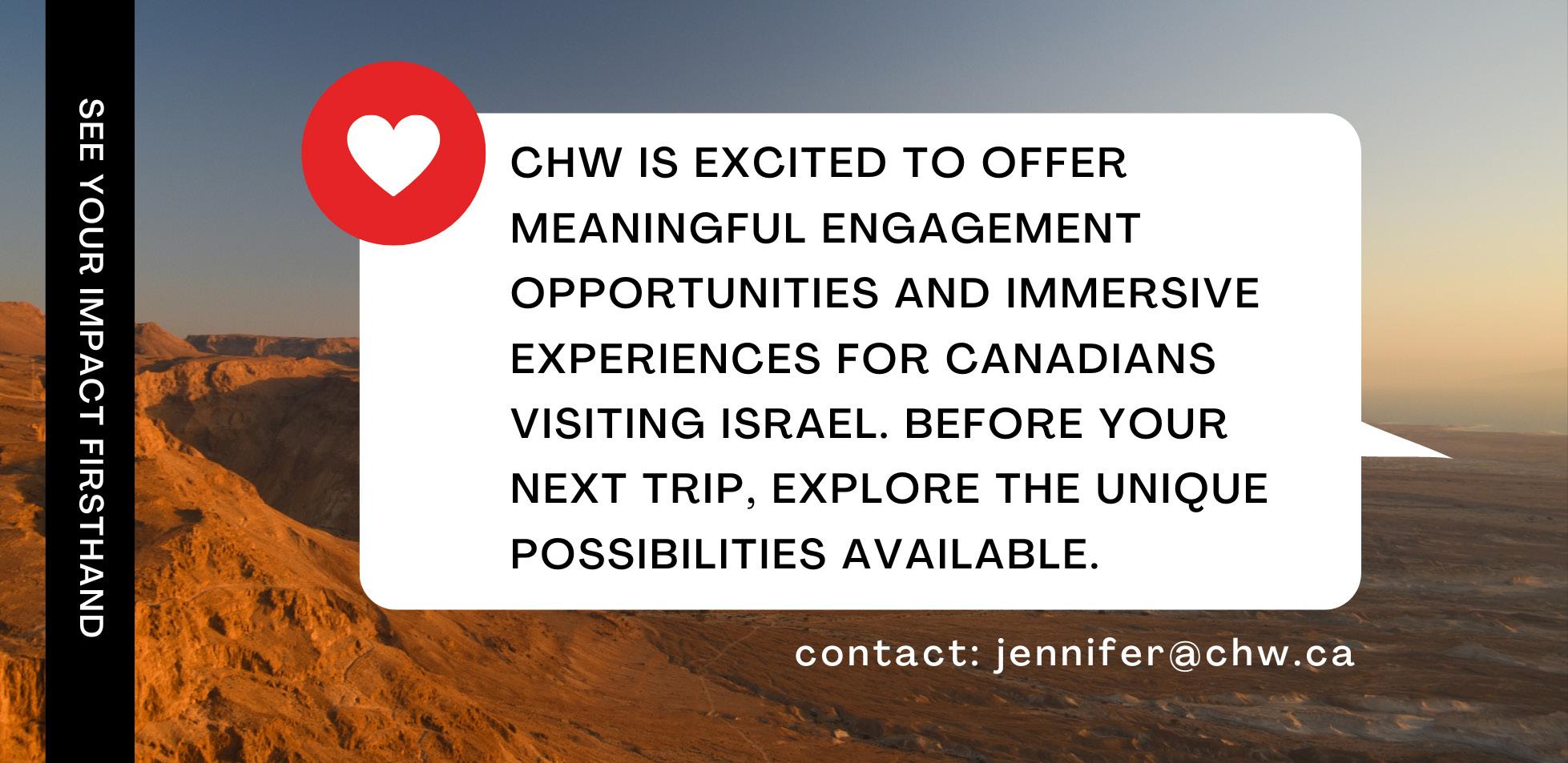 Includes Itinerary reveal and info for upcoming CHW trip to Israel
