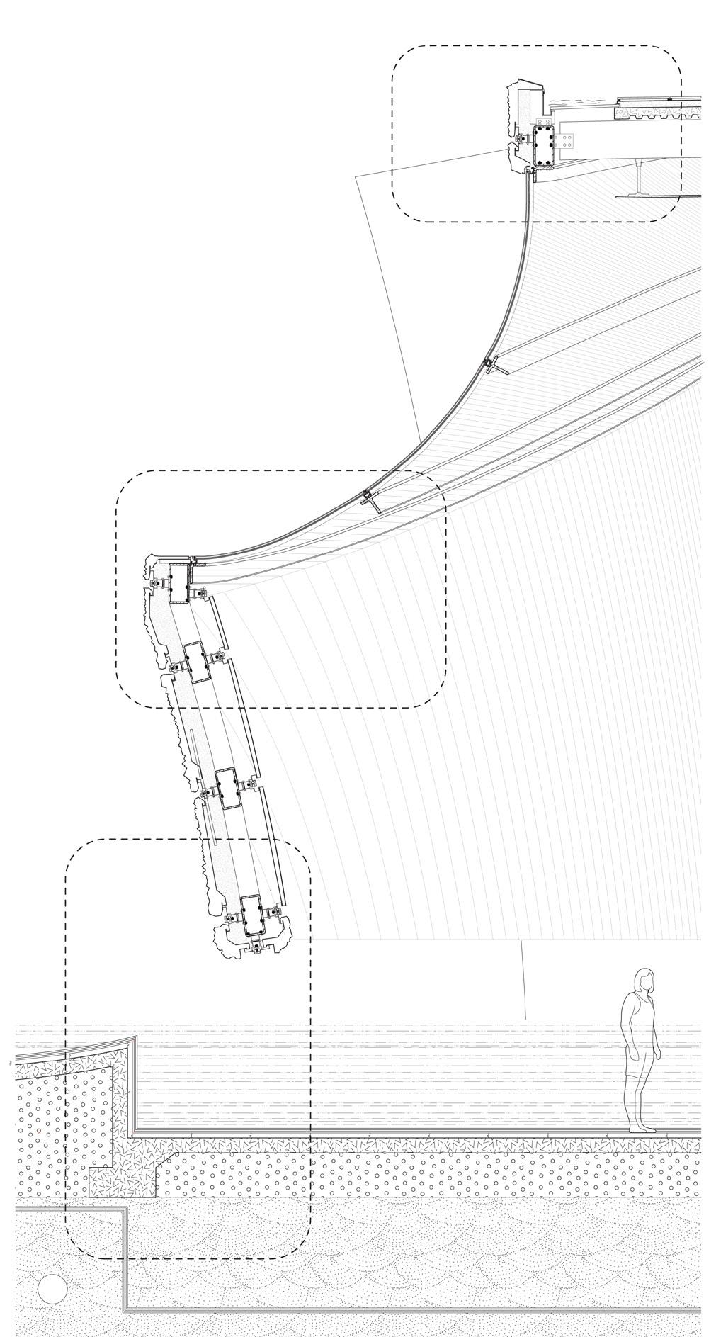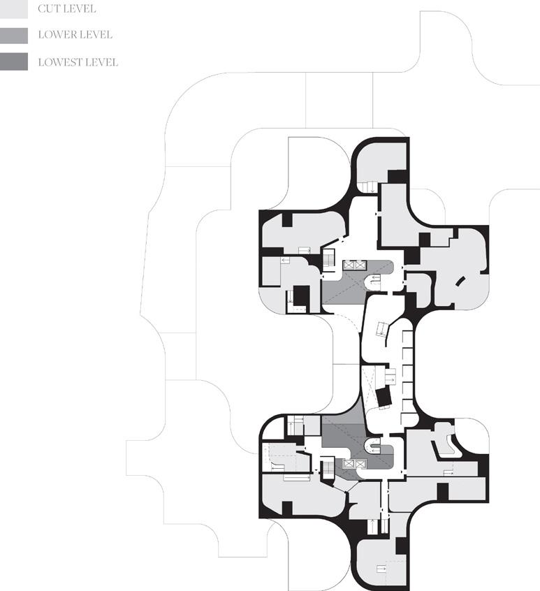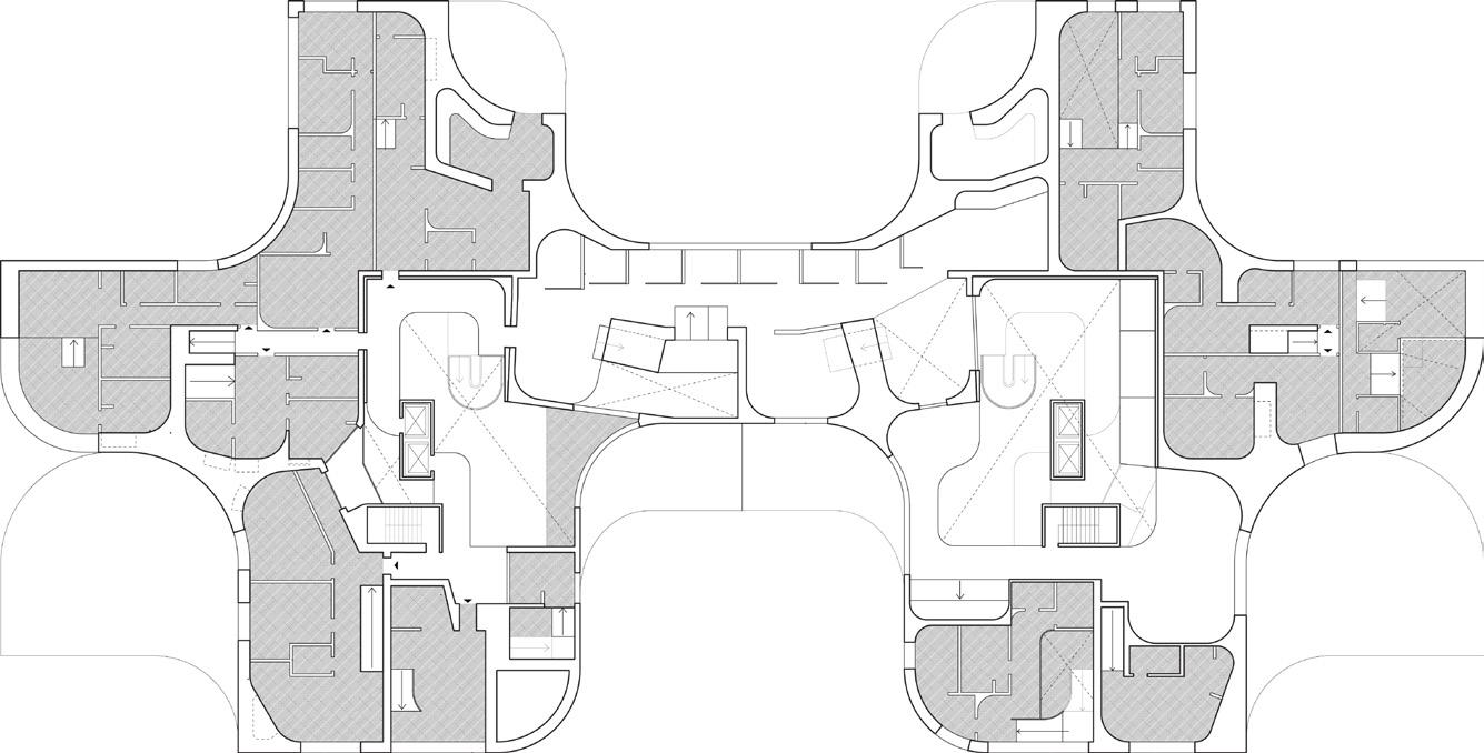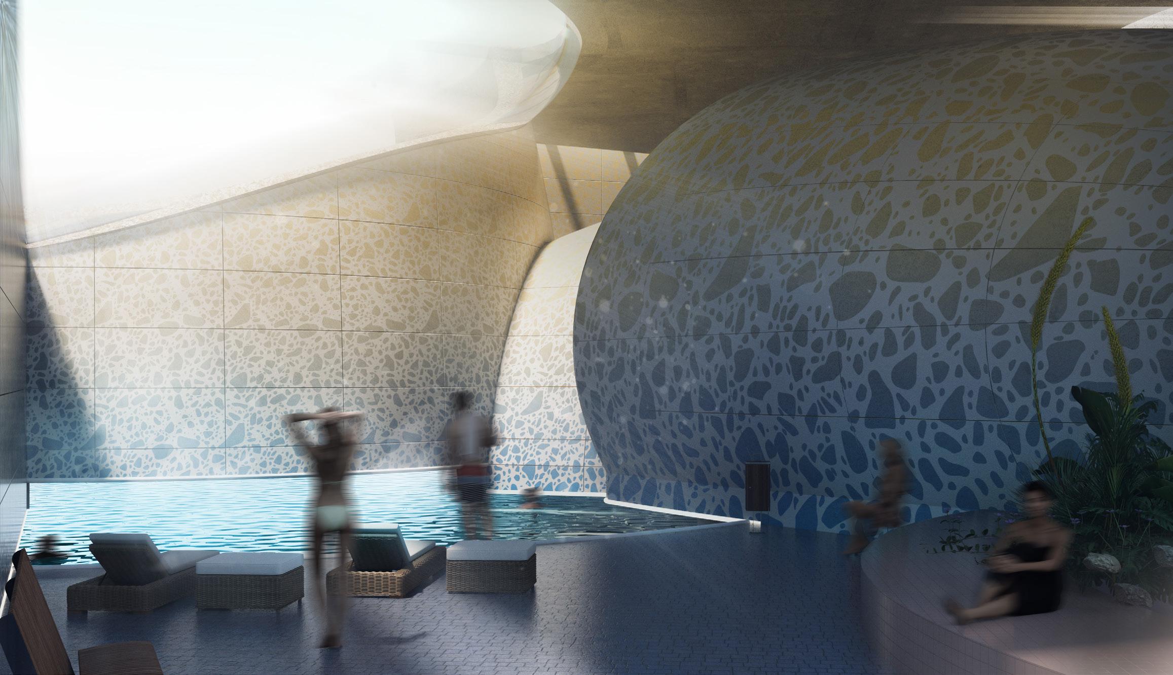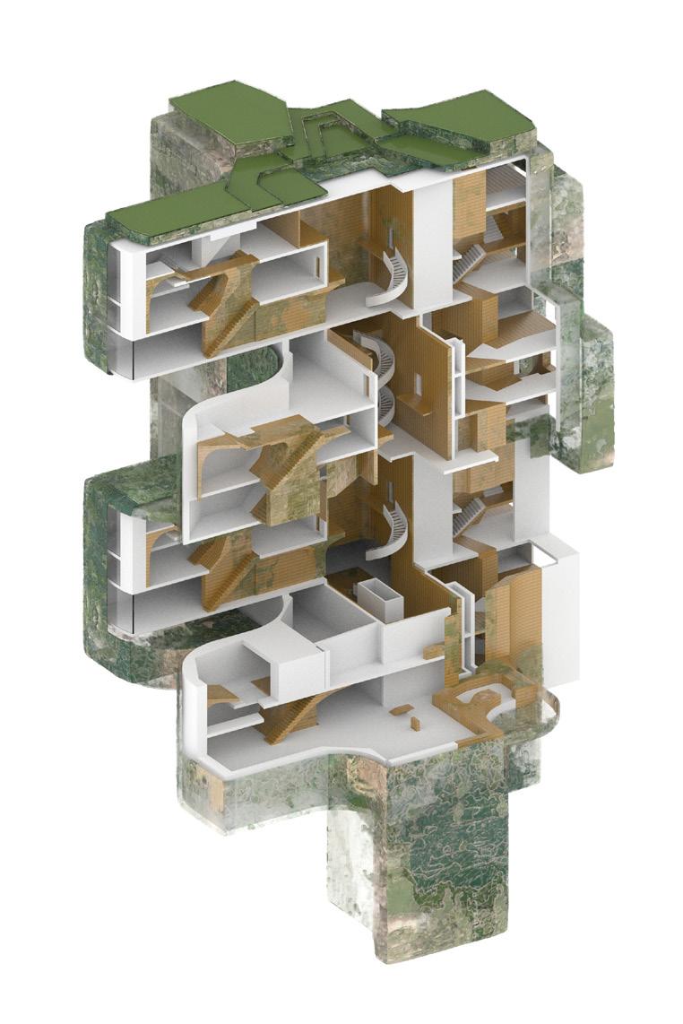 To address the prompts of the bathhouse program as well as the ideas of gender/sex fluidity alongside the ruinous and the picturesque, we try to break the idea of an "ideal". The form providing a wide variety of pools and spaces, and materiality introducing "imperfect" features like weathering and moss, along with "welcome" features like trees and plants in between gaps. We don't impose an ideal mindset; we just enable the possibility of many mindsets. We thus allow people to flow between these mindsets via the connectivity of the pools.