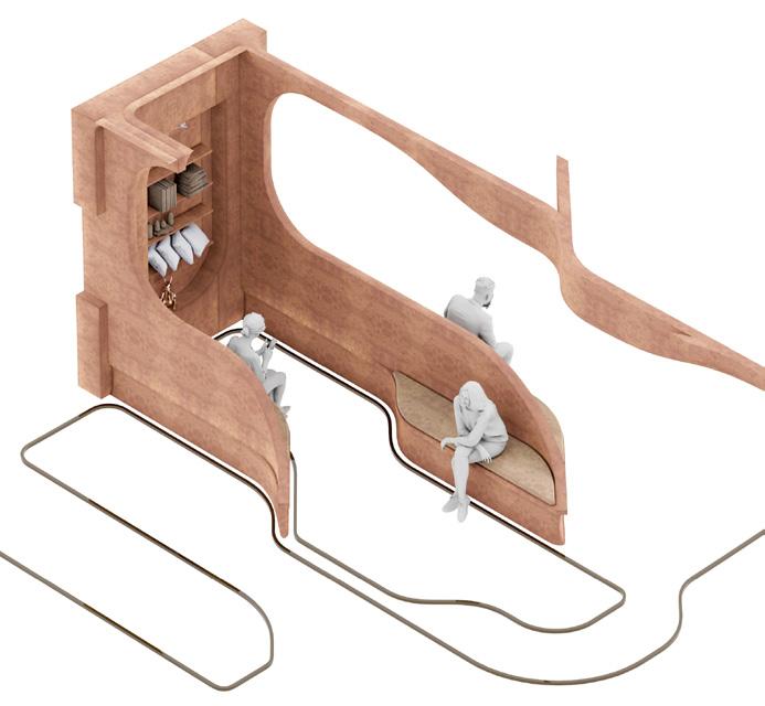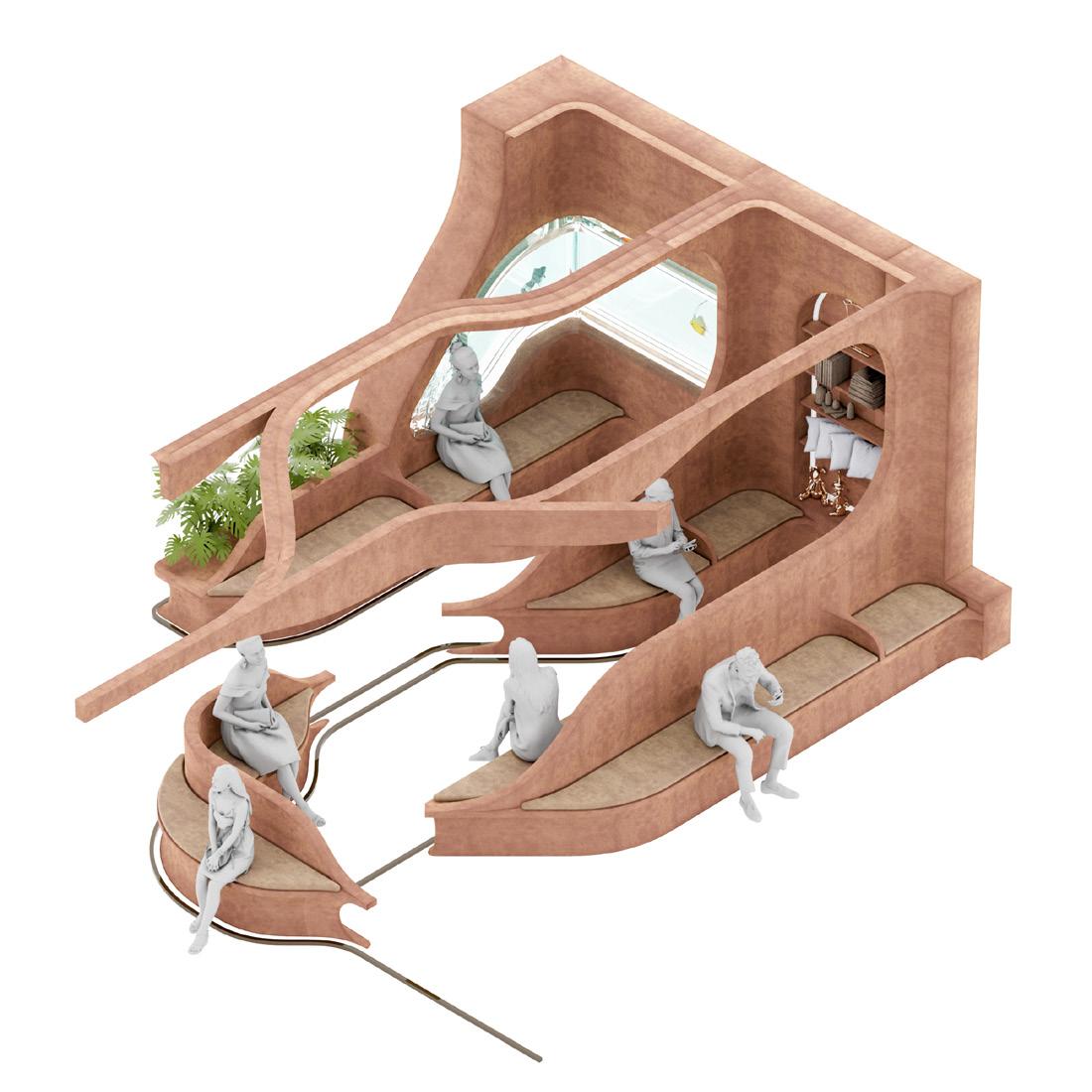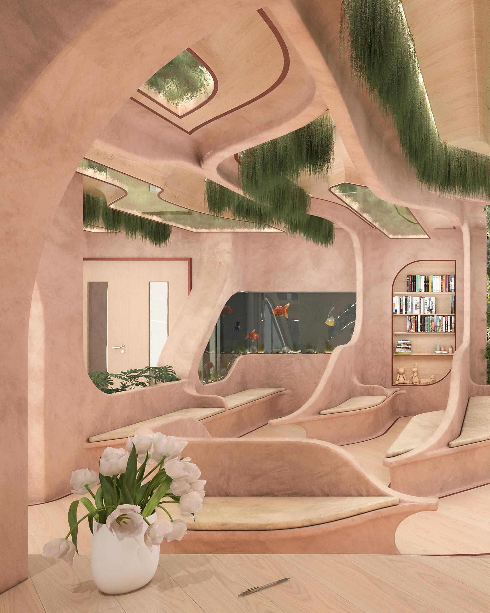 In this healthcare design project, the focus is on enhancing the patient experience by creating a welcoming and calming environment, particularly it is a waiting area of psychological consulting facilities. Given the limited availability of natural light, the design proposes an integrated "cave-like" space that promotes a sense of security and reduces anxiety.