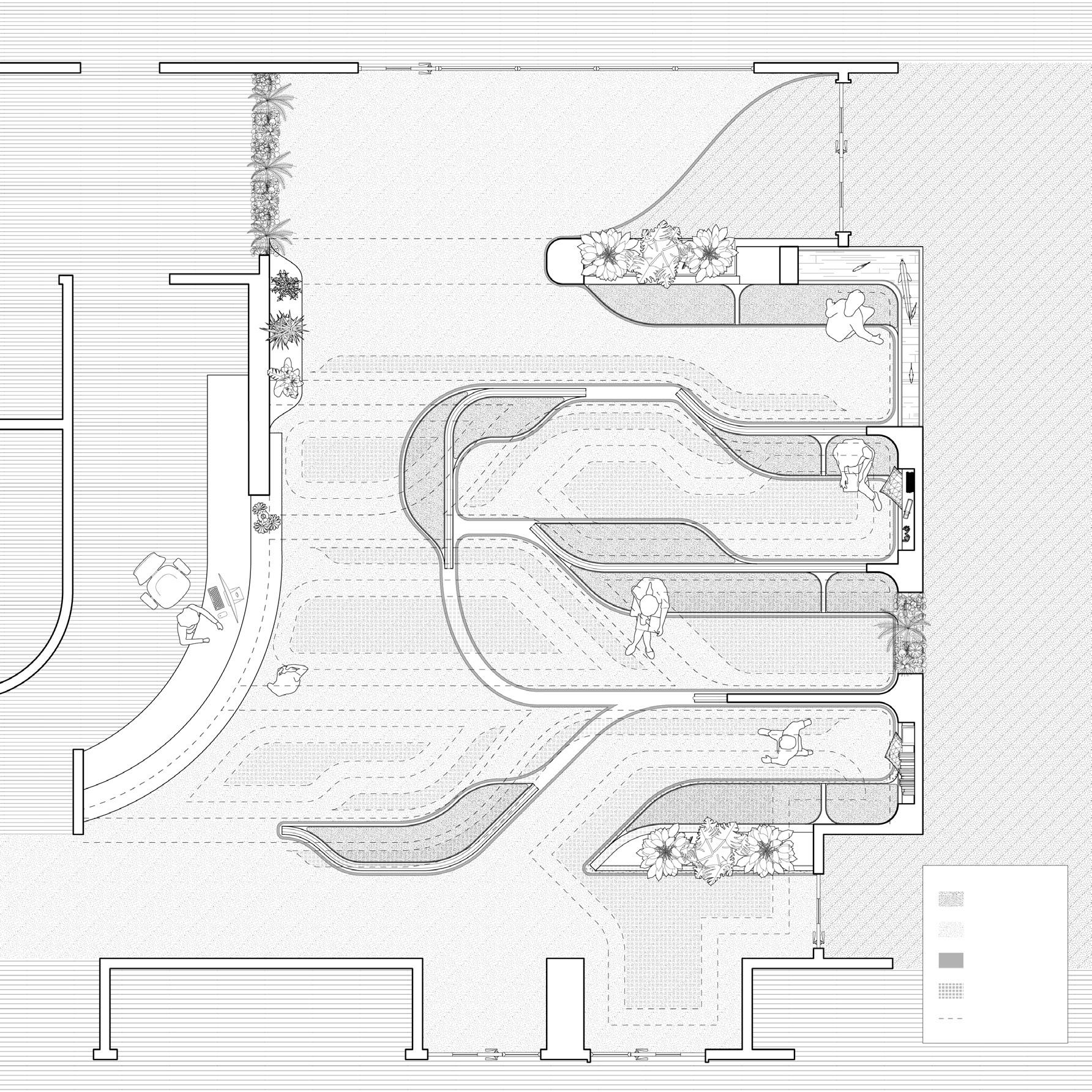 In order to further reduce anxiety, the design incorporates interactive elements, such as a reading nook, a green wall, and fish tanks. These features aim to create a sense of tranquility and promote relaxation, which can help alleviate stress and worry for patients. Overall, this design seeks to prioritize the emotional needs of patients and create a peaceful, nurturing environment.