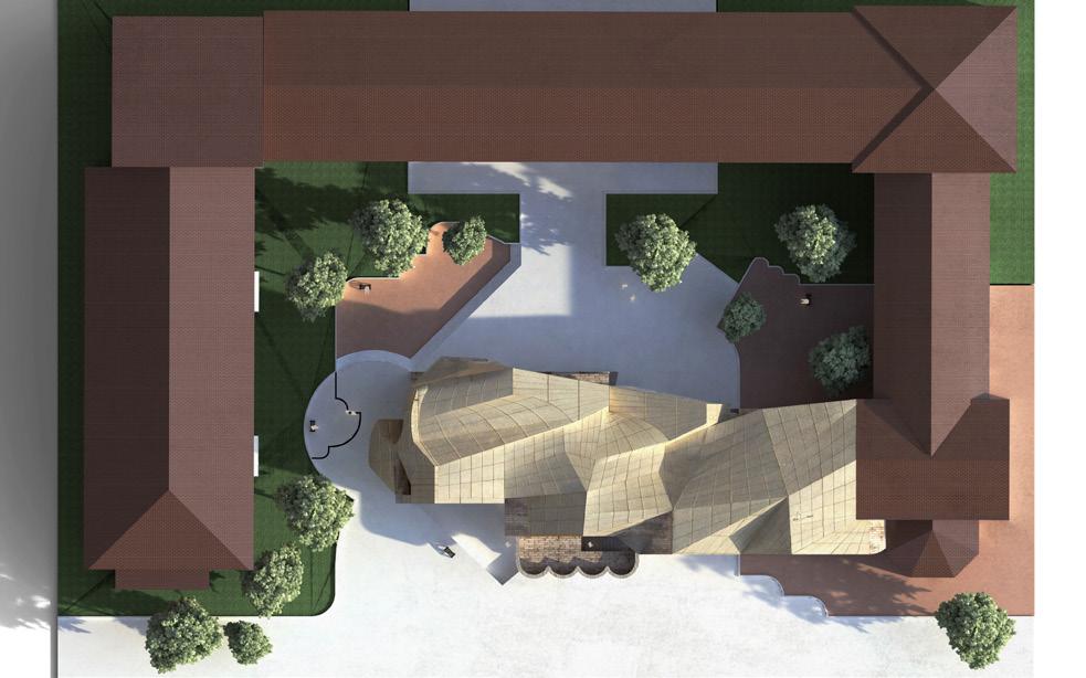 Museum, to most people, is a place to preserve and exhibit. But for the artifacts, it is a place to settle and observe the revolution of the world and history. The extension was designed to be a place for visitors to observe and have meditation about the artifacts, the history and the society. The main concept of the design here is to construct a space between interior and exterior that also blends the old and new. The gable and hip roofs of the museum were further developed to consist a new roof typology. These surfaces constructed some non-enclosed space that contains irregular openings.